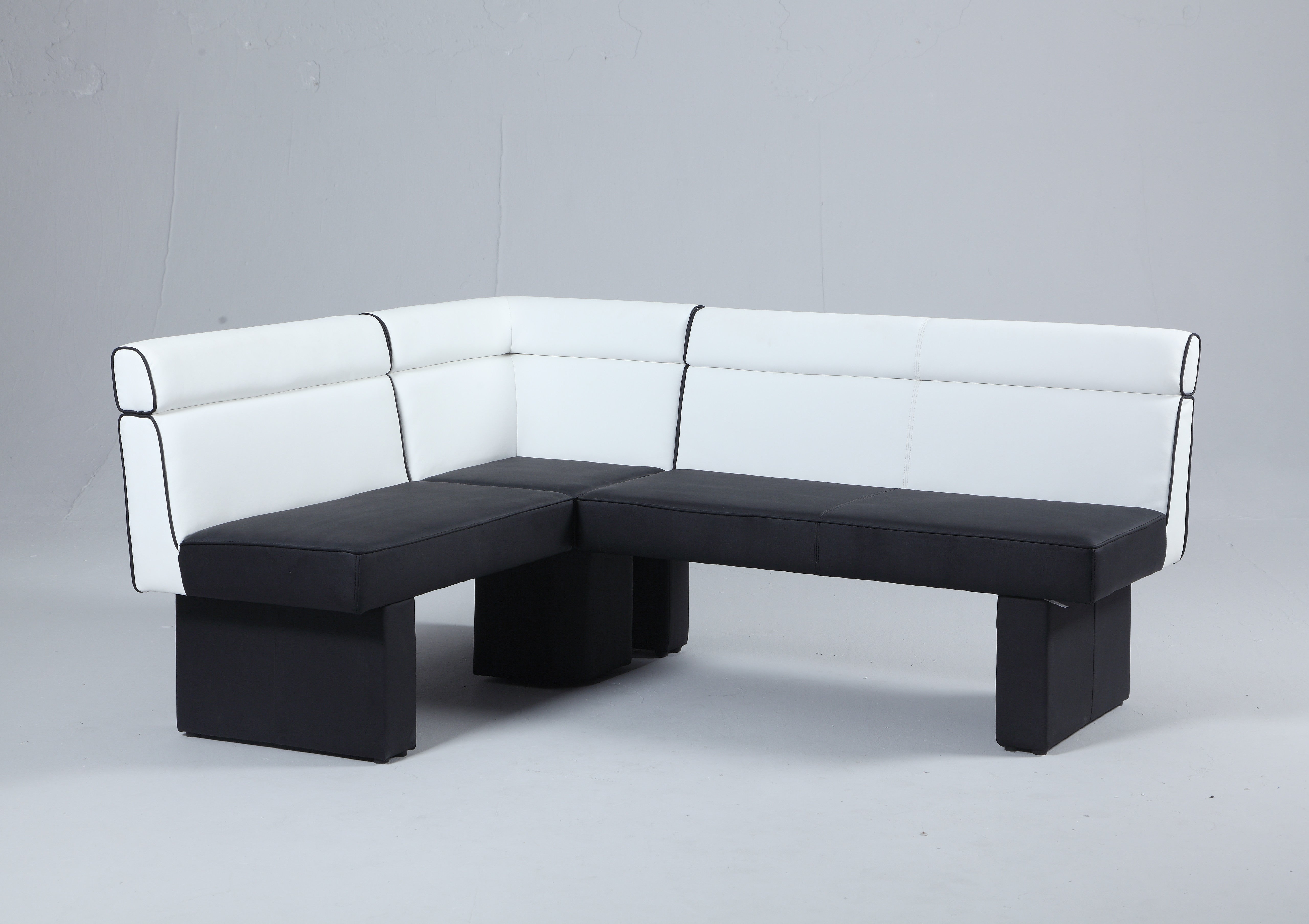 This modern style nook features 2- tone faux leather and is reversible, providing more seating options to match any dining space.
