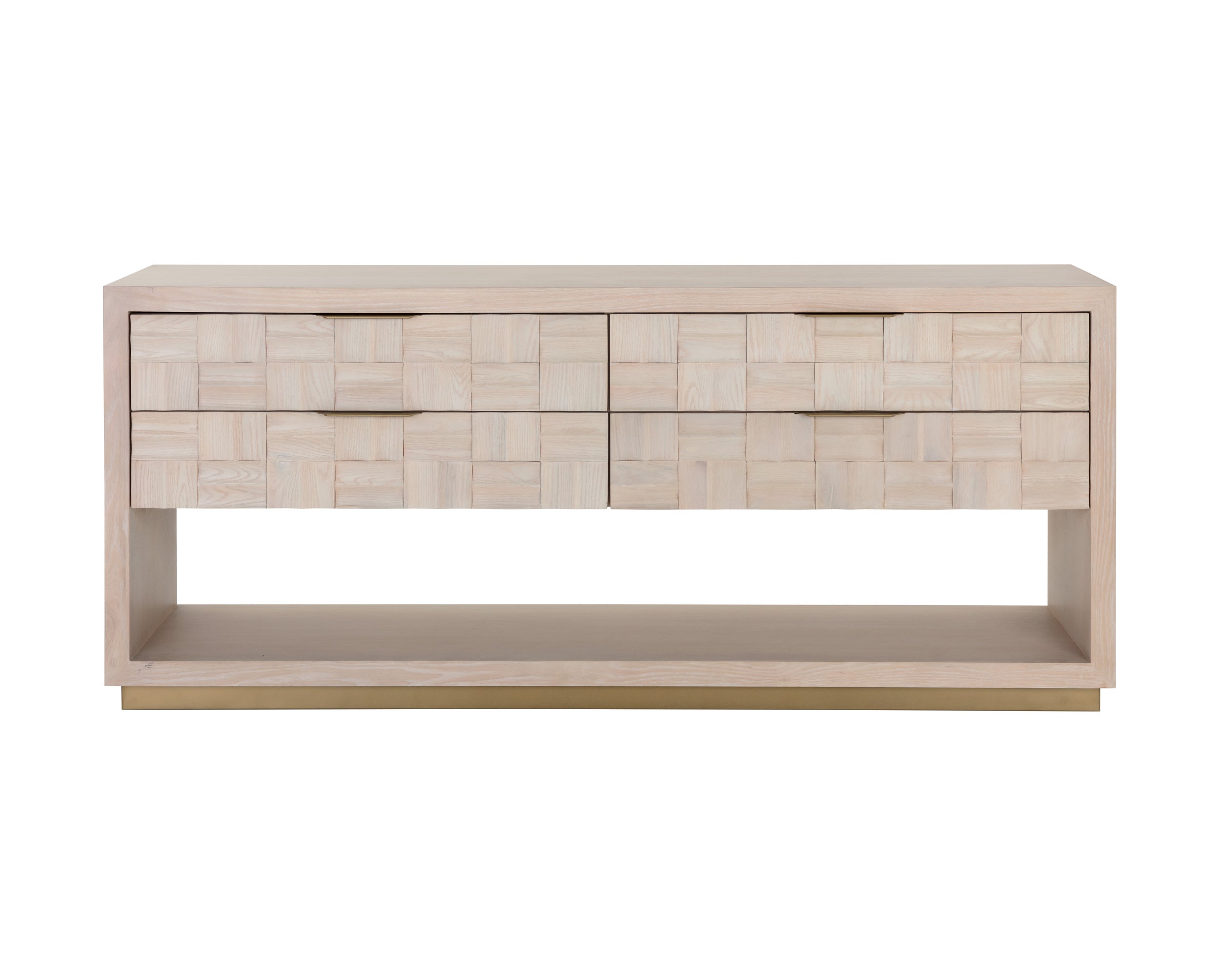 The Akava Dresser will add intrigue to any bedroom space. Features a minimal linear frame crafted with a light oak wood veneer. Wood tiling on the front drawer brings texture and visual interest to the overall look. Completed with light gold aluminum handles and a matching steel base. As wood is an organic, porous material, these pieces will contain natural variation of texture and may also exhibit fine indentations and cracks. Wood pieces will also display a disparity of colour and grain, and visible knots and burls that add to the character of each piece.