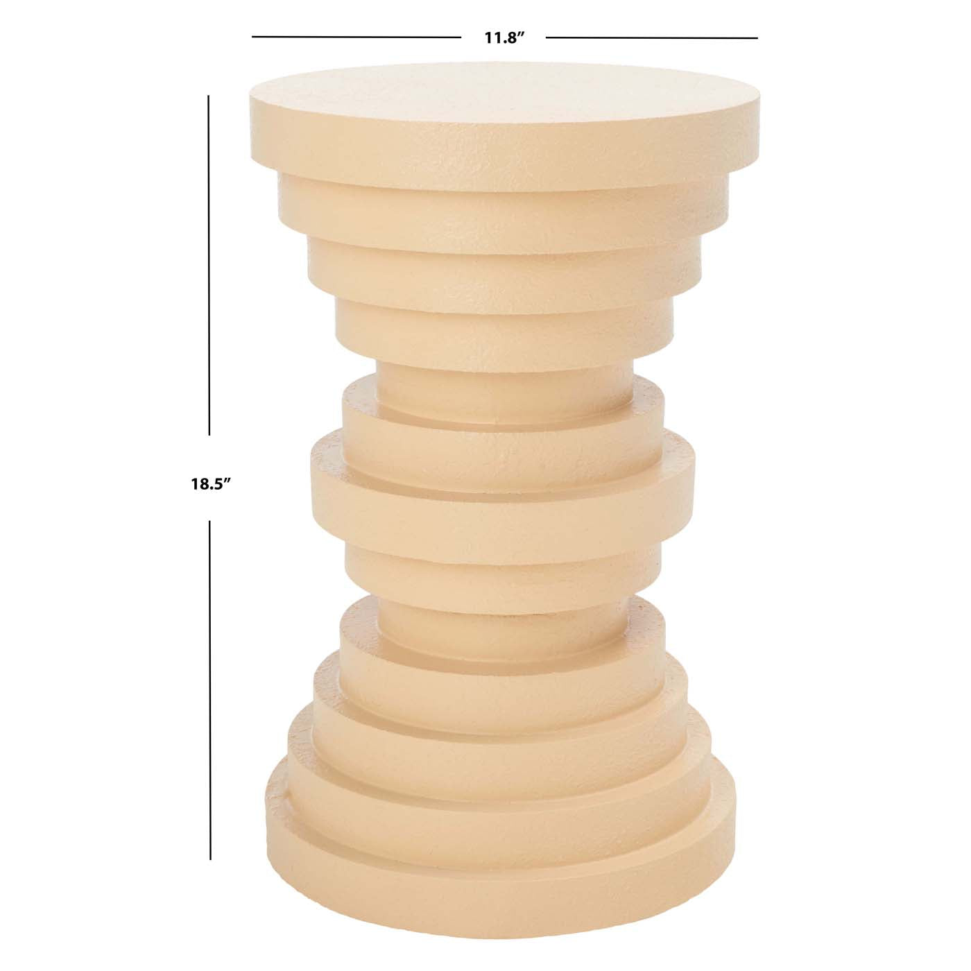 Add a graphic and striking accent to your home with our Ali Accent Table. Round discs are stacked together to attain a sculptural silhouette. Featuring voluminous curves and soft cream hues, the accent table is sure to make a bold statement in any setting. Easily transforming your living area into the perfect place to entertain.