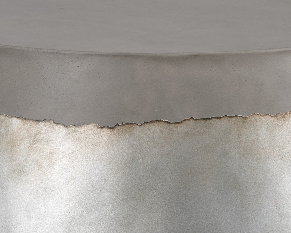 A beautiful coffee table with a stunning pop of metallic. The Aries is stocked in silver foil accents that pair perfectly with the industrial grey concrete. A versatile and functional piece