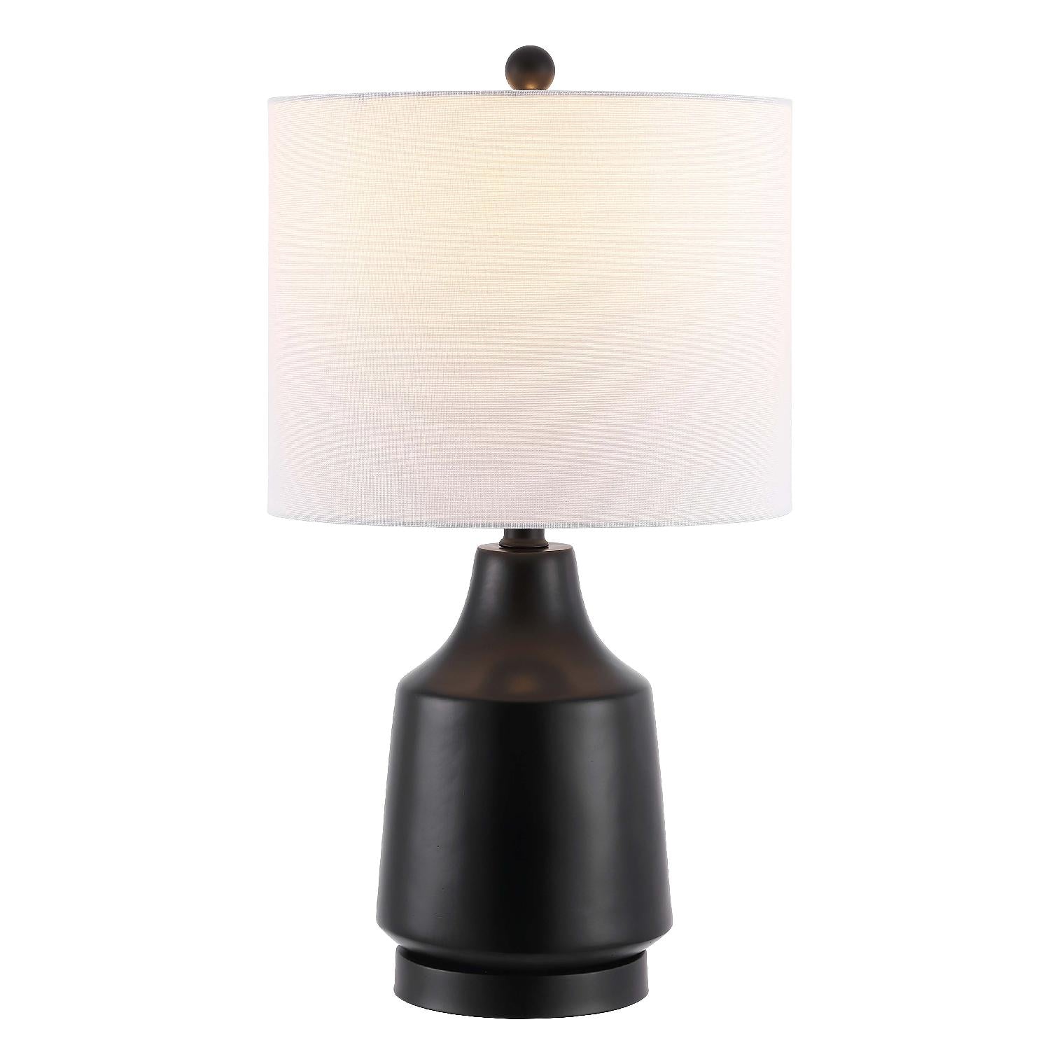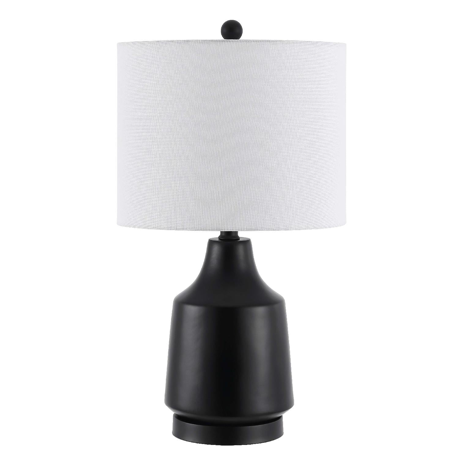 This Atrius Table Lamp is a must-have for sleek contemporary d?cor. The gently curved silhouette of Atrius?? black resin body are decoratively offset by the stark lines of its raised circular base and crisp white drum shade, making it a designer favorite.