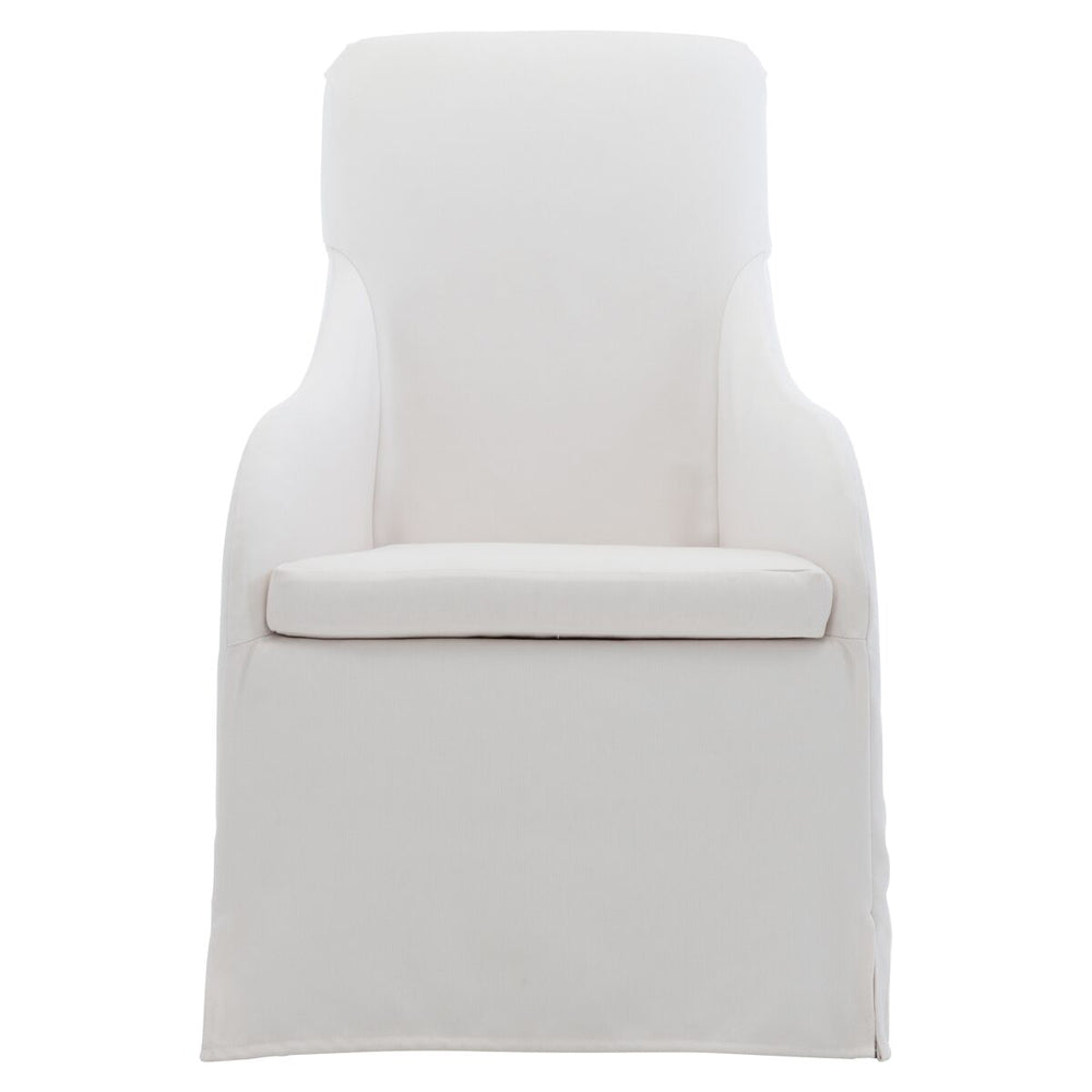 With an elegant slipcover look and graceful sloping arms, this all-weather dining chair sets a refined yet relaxed tone.