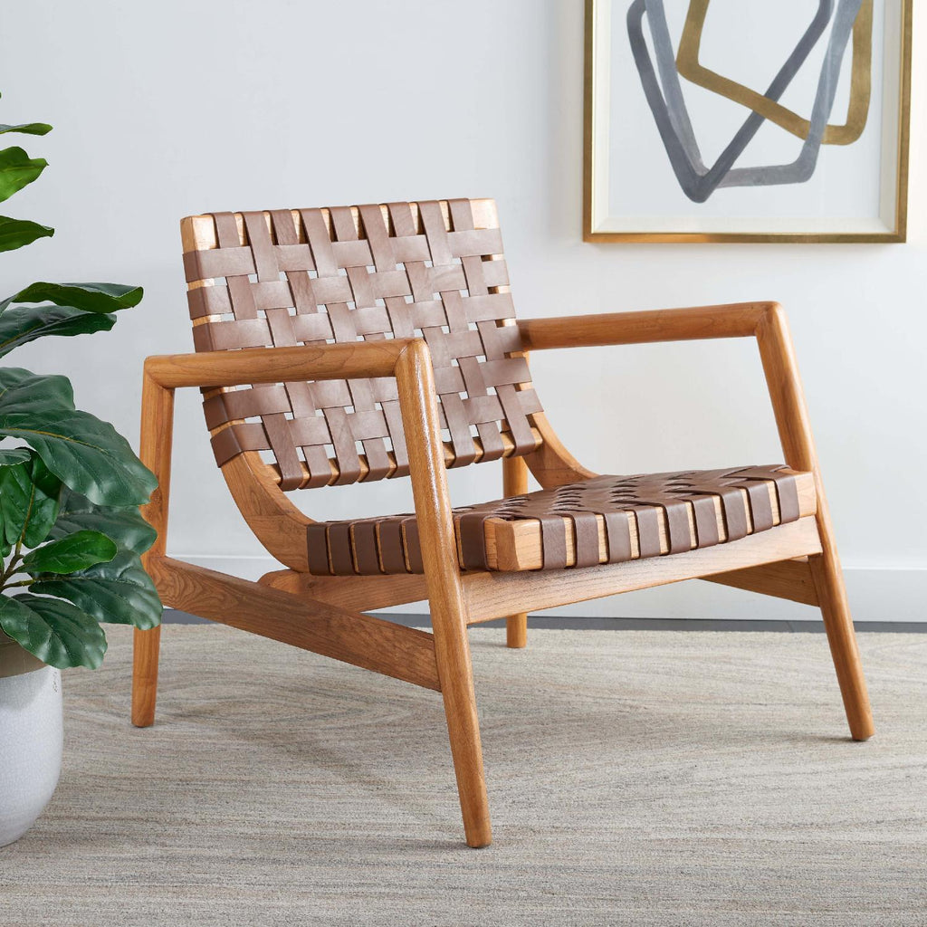 Bellona Leather Woven Accent Chair | Safavieh - ACH1004