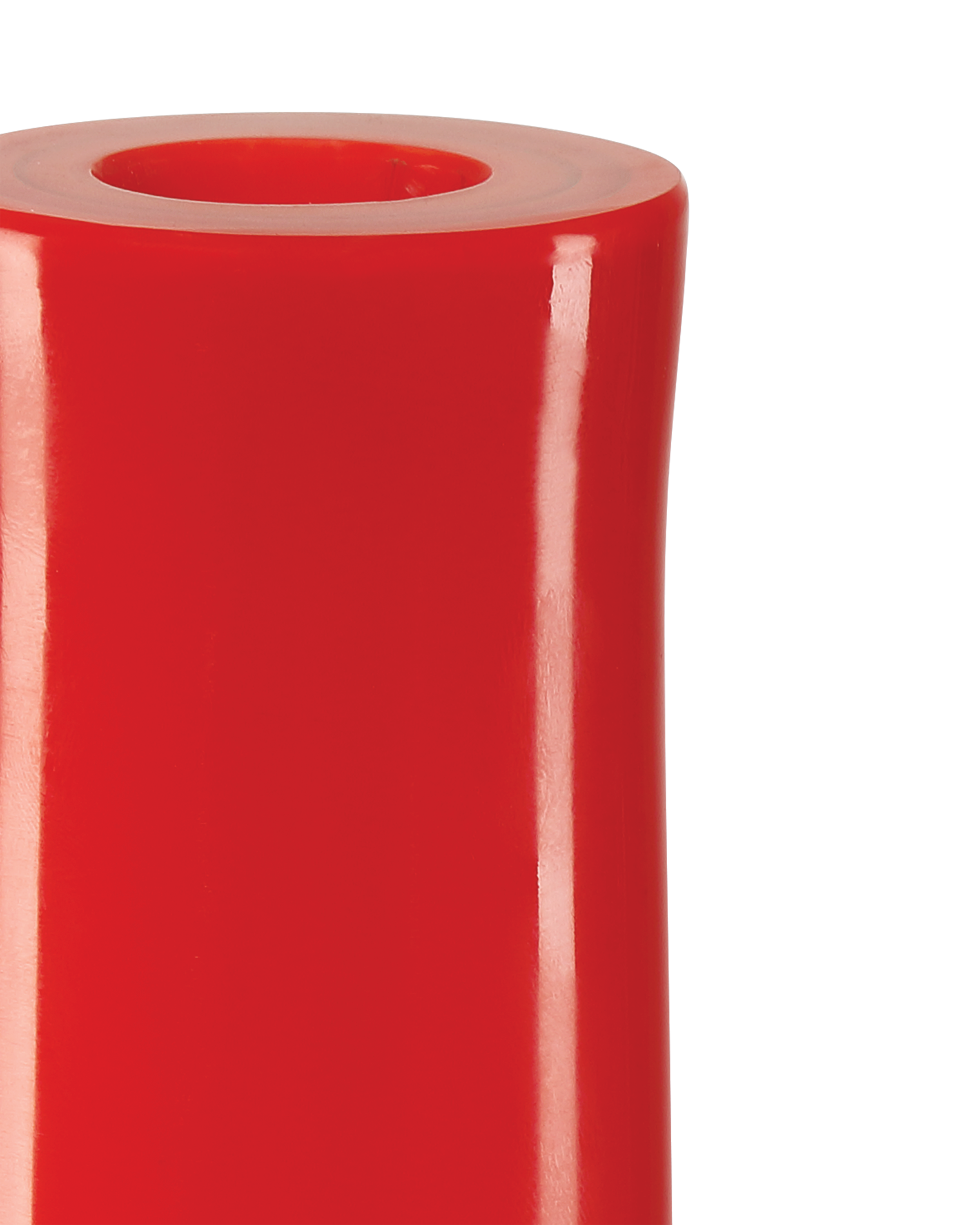 The Bittersweet Peking Stem Vase is made of a unique layered glass, a complex process of blowing, carving then dipping multiple times. The wonderful deep coral orange was a special color during the Ming Dynasty, as it historically represented fire and desire, and was highly prized in the emperor's palace for its brilliance.