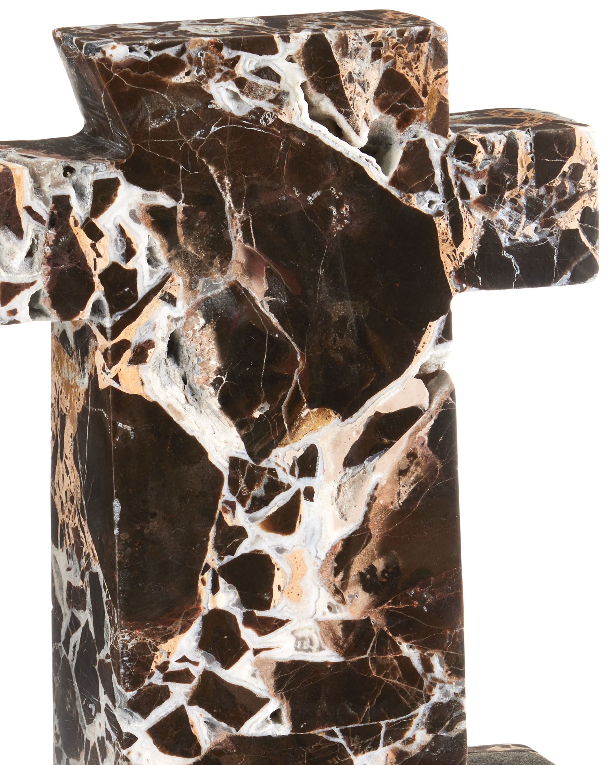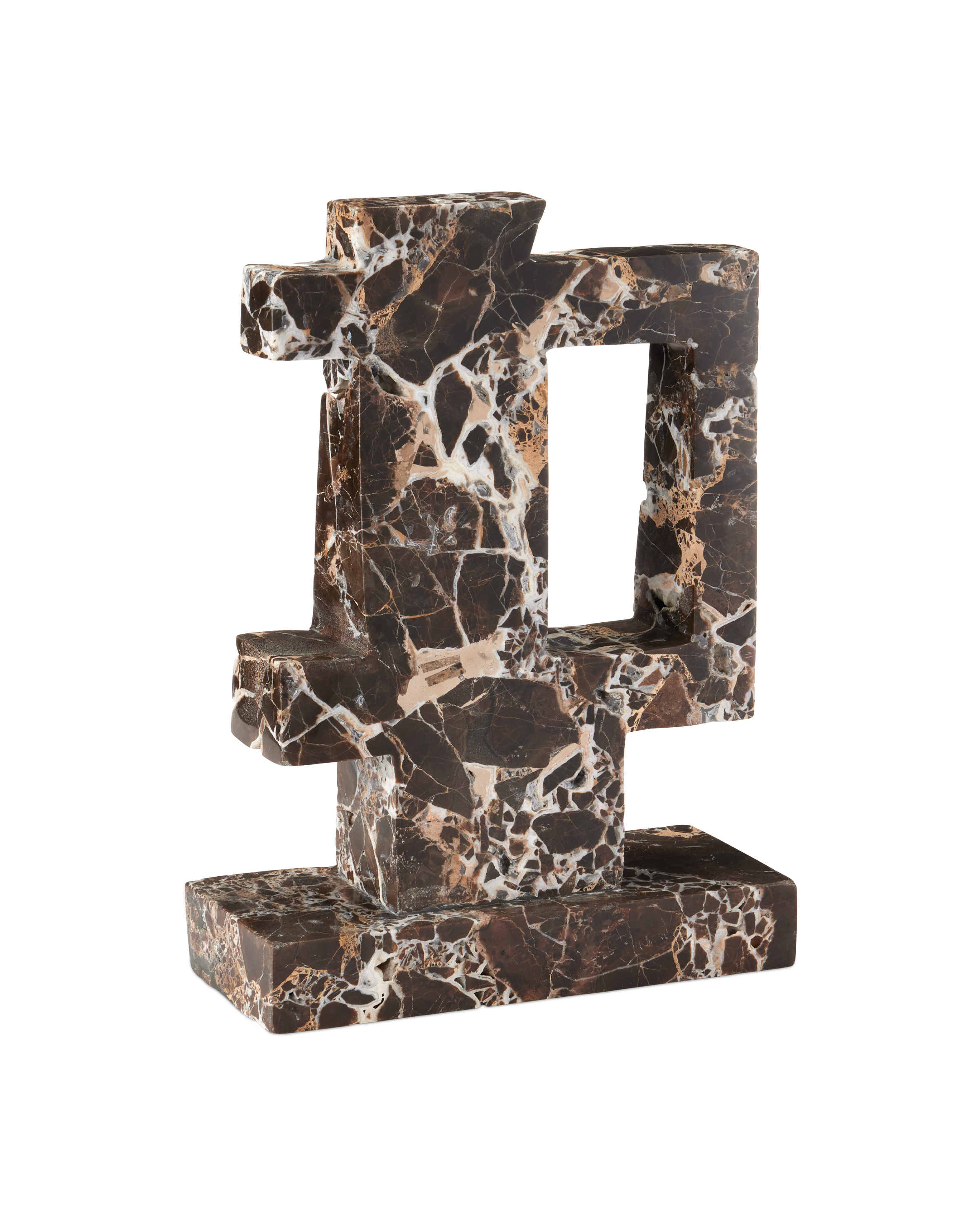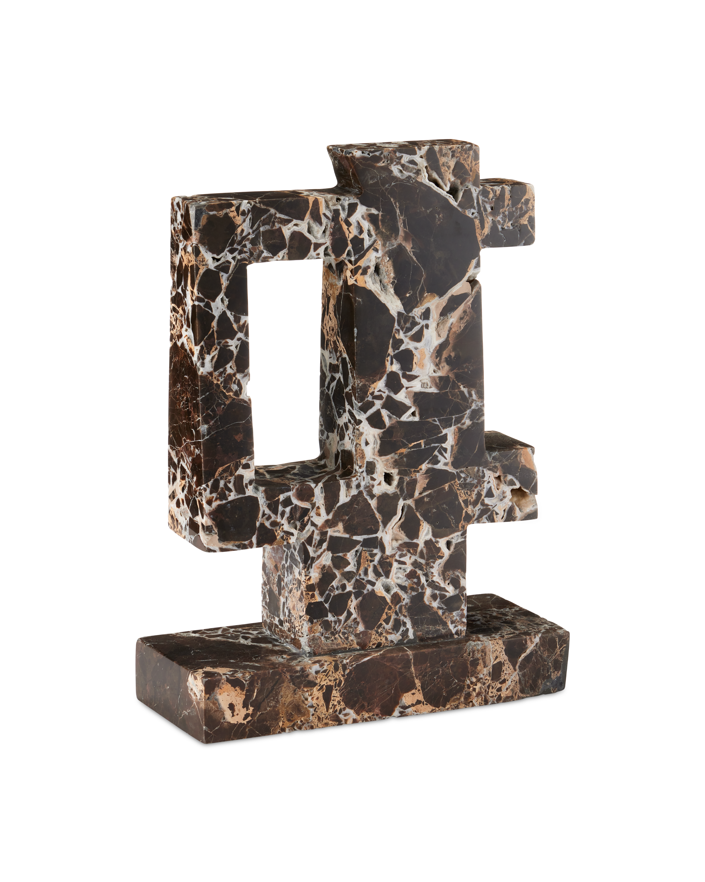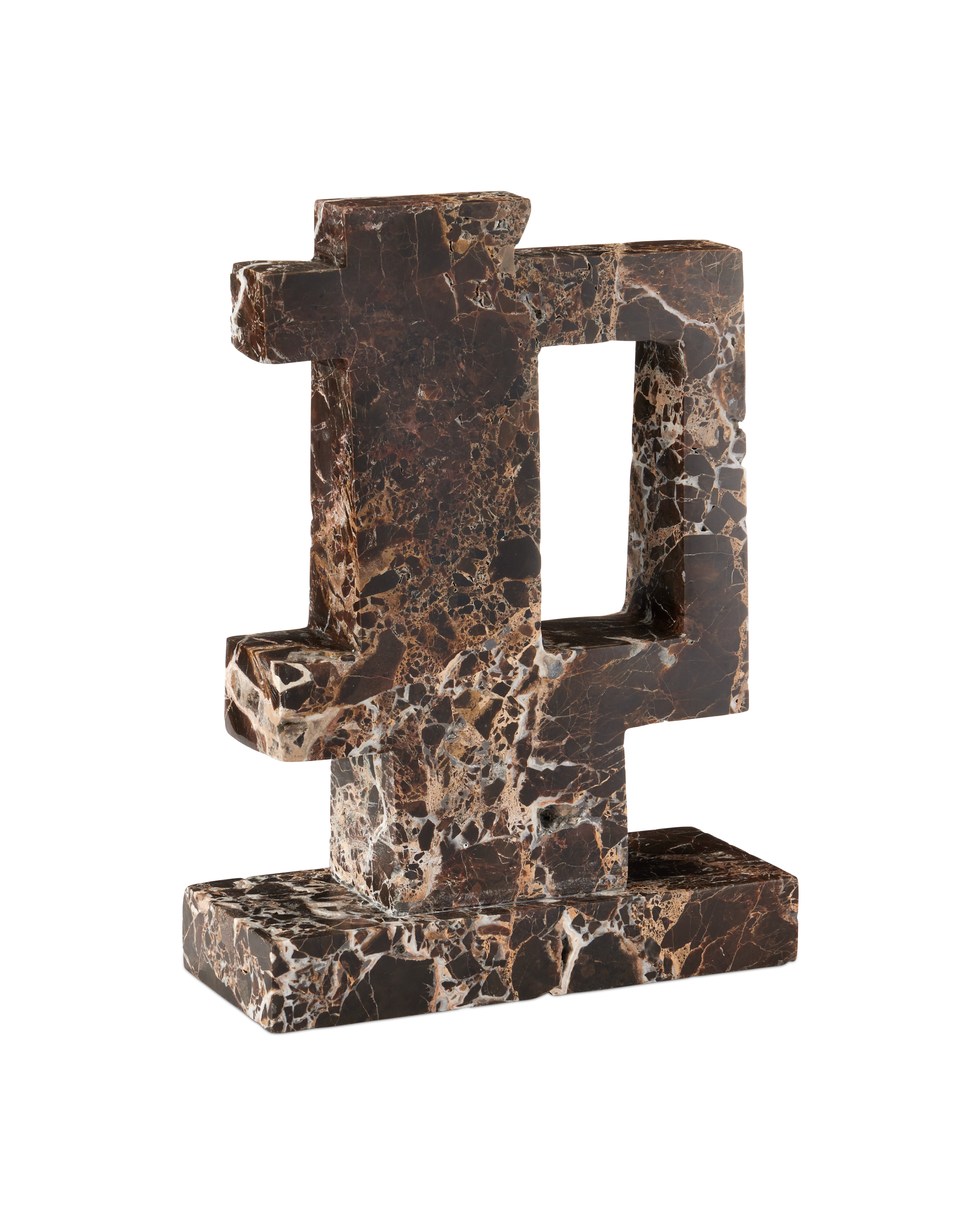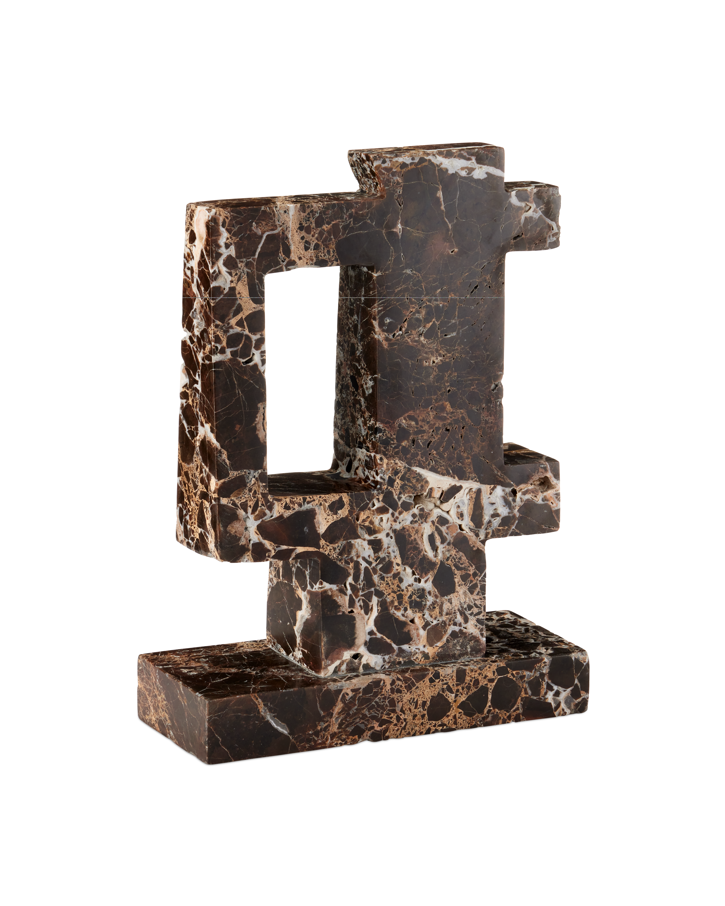 The Blount Marble Object is a striking geometric sculpture crafted from Emperador stone, a luxurious marble known for its rich dark brown color and natural pitting. Bold veining runs throughout the piece, adding depth and visual interest to its intricate design. Perfect as a statement accent or a sophisticated addition to any display, this sculpture showcases the timeless elegance of natural stone.