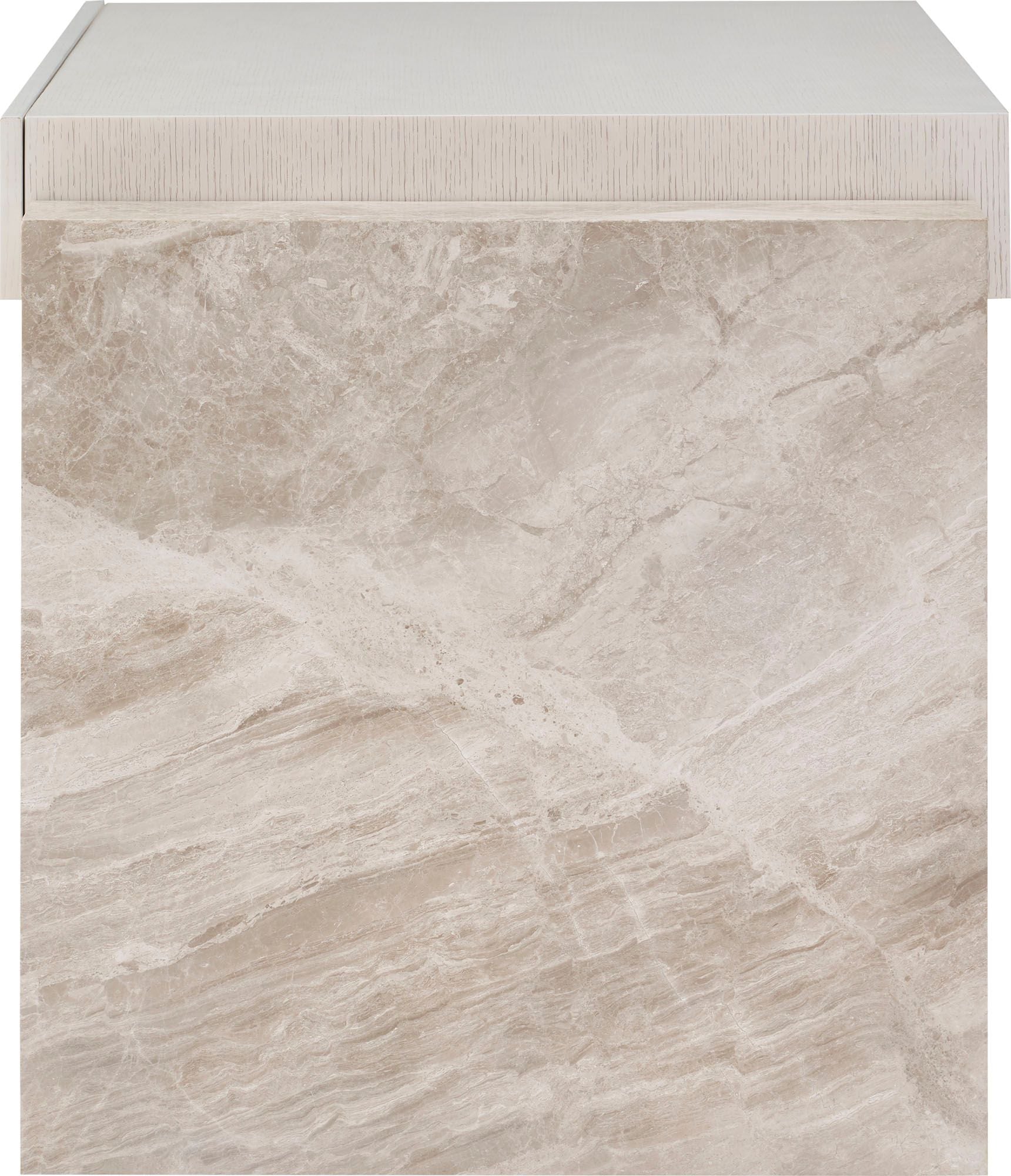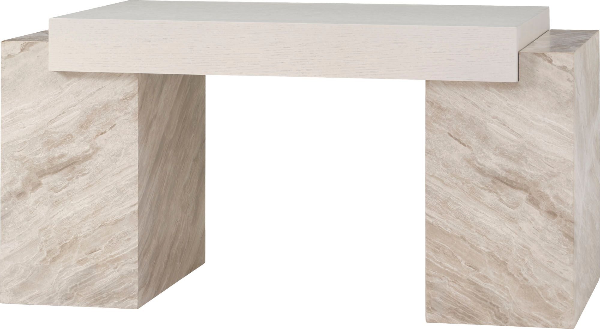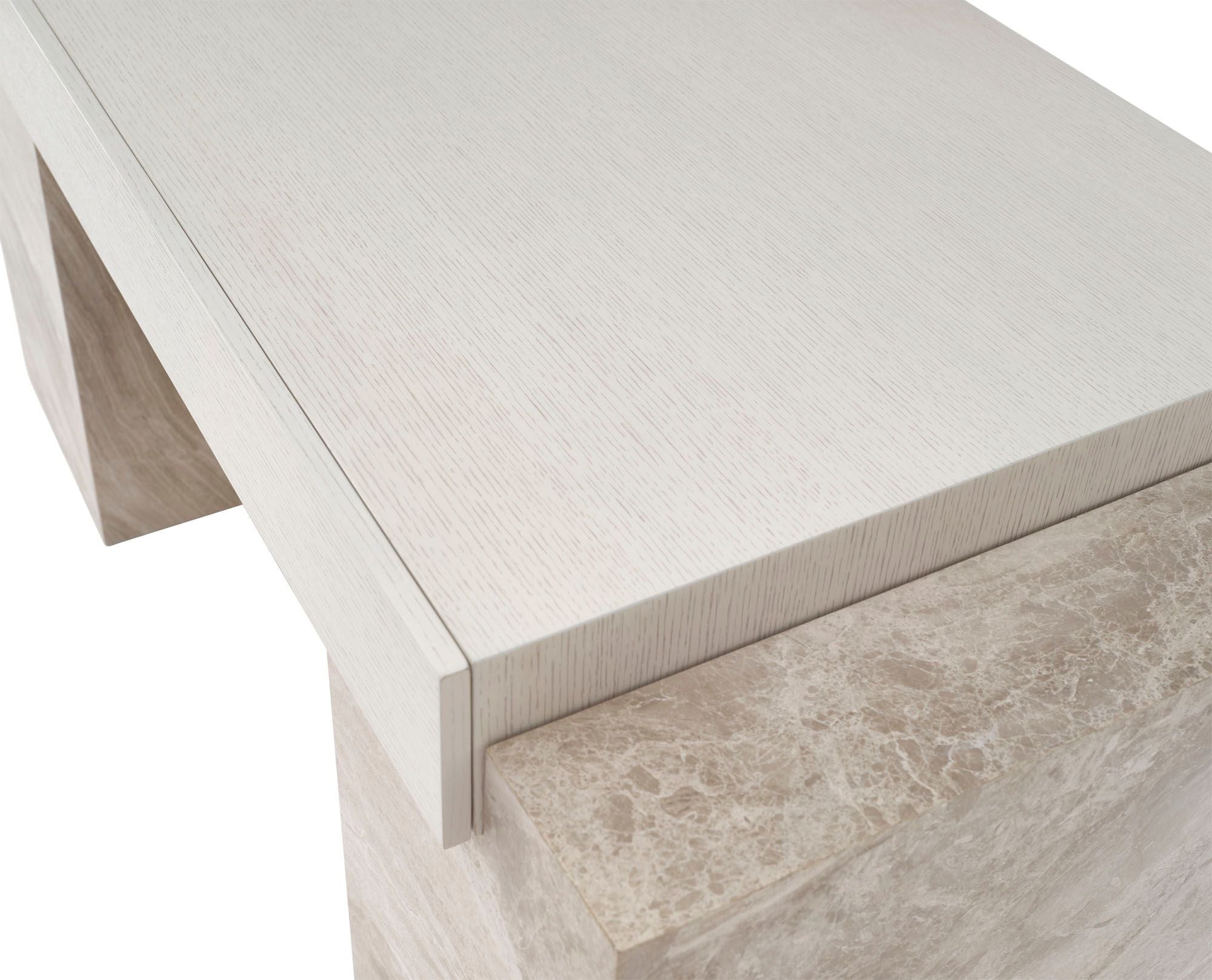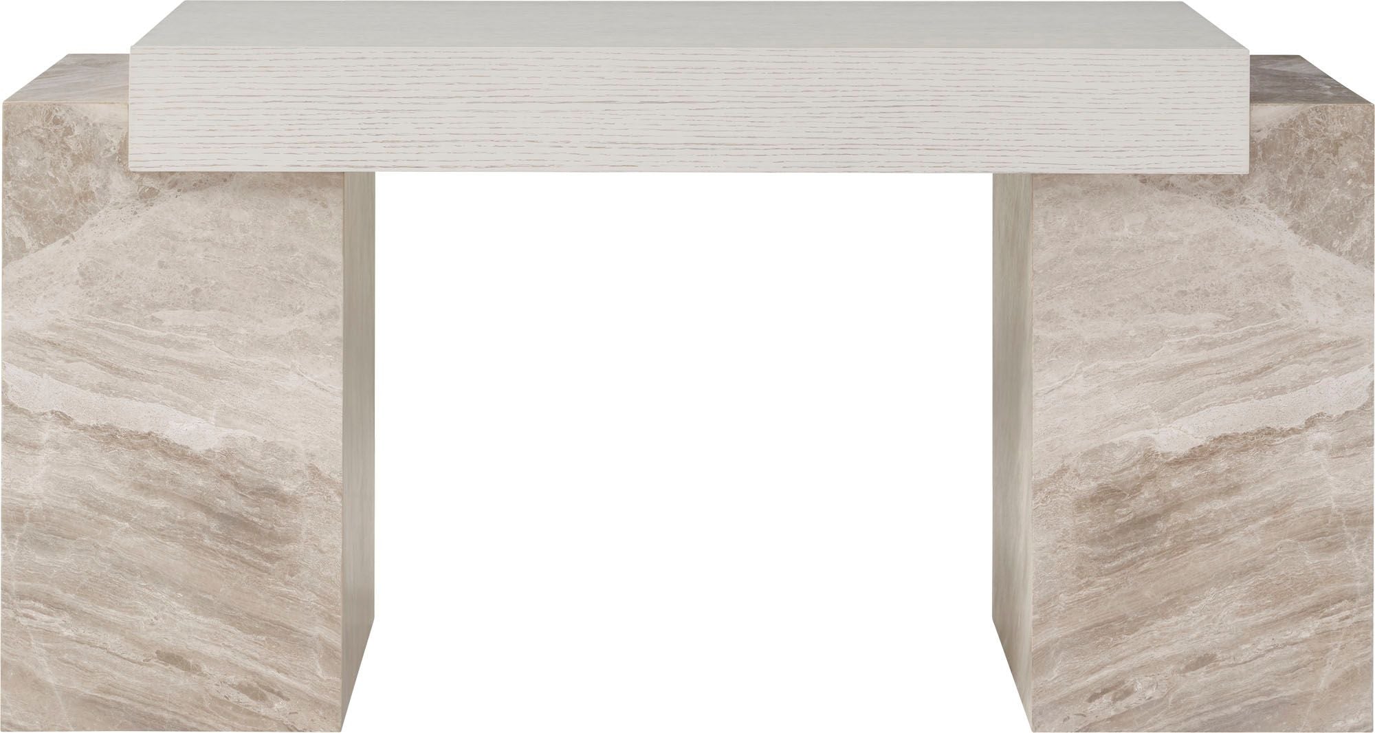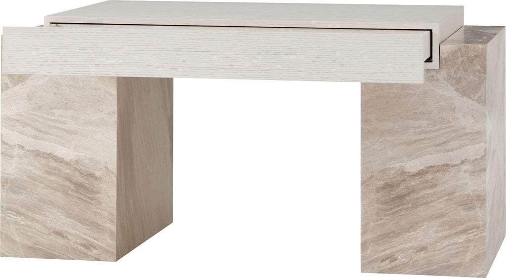 The Brighton Desk is visually striking and ineffably modern. Luxurious Lena Grey Marble contrasts with the warmth of wirebrushed oak, pairing natural materials with a bold utilitarian form.
