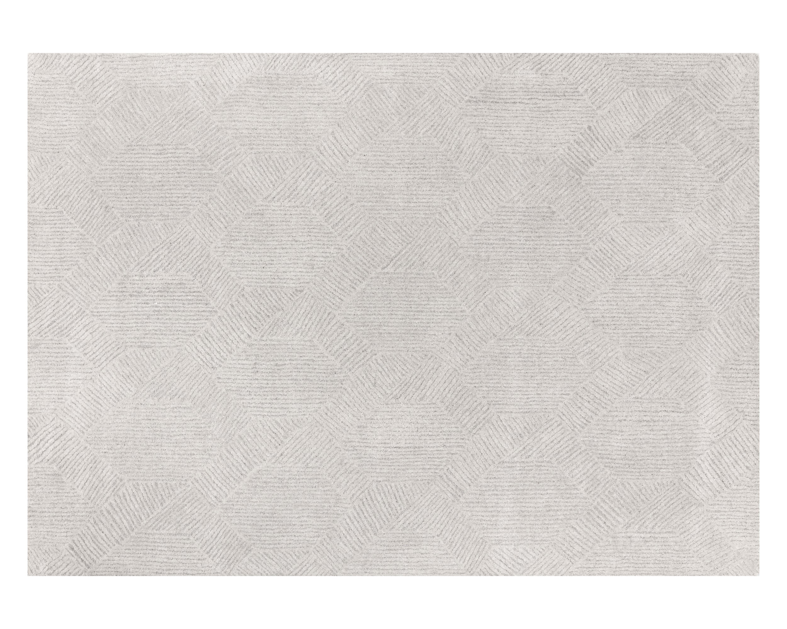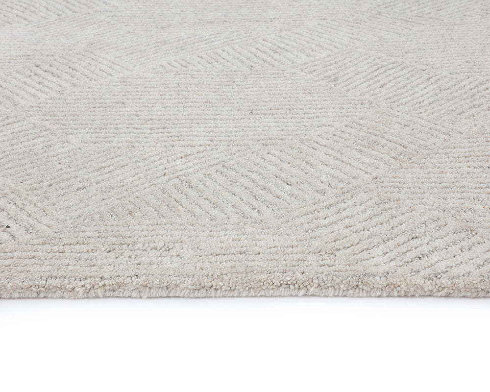 Complete modern and contemporary spaces with this hand-tufted rug. Features a subtle geometric pattern in an oatmeal/grey wool-viscose blend. Available in four sizes. Variations in colour, design and size are to be expected and embraced in each rug due to the distinctive weaving process followed by each artisan, resulting in a truly one-of-a-kind piece. Shedding is inherent to wool rugs and will subside over time with regular vacuuming.