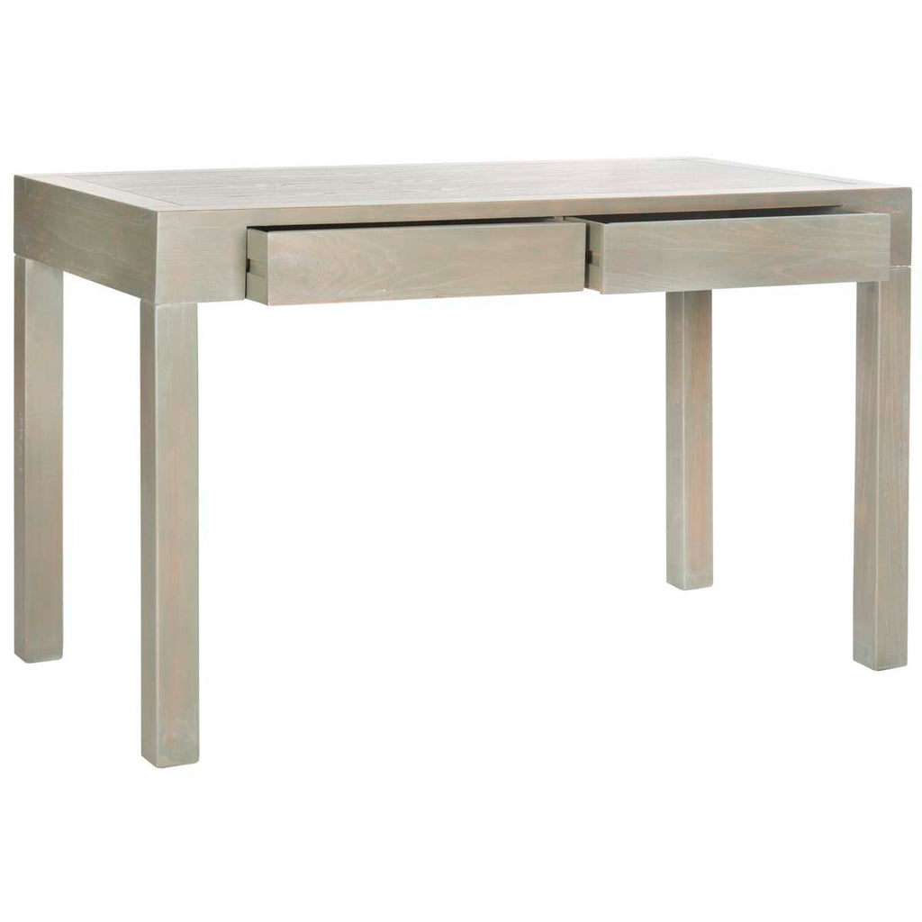 Shaker simplicity comes to today's contemporary decor in this Carmella Desk. Carmella's timeless Parson's silhouette and ash grey finish ensure it harmonizes perfectly with any room's aesthetic, and two drawers provide space for important papers and favorite pens.