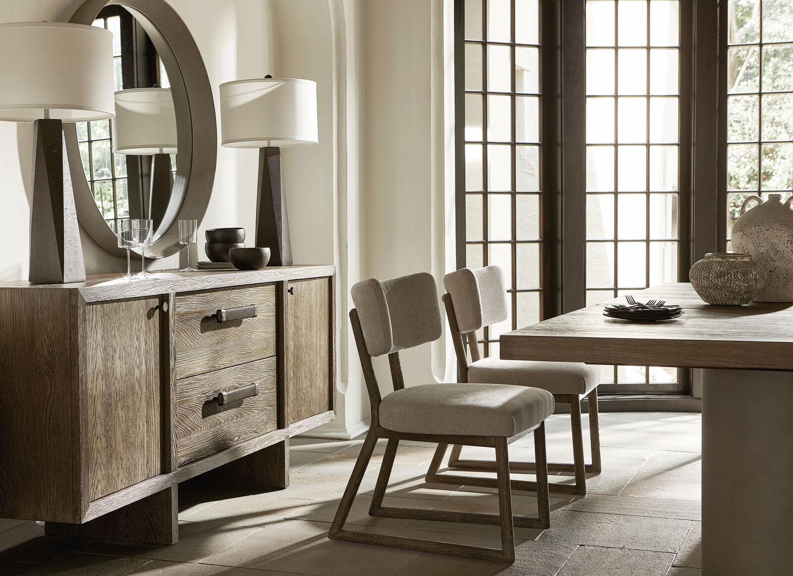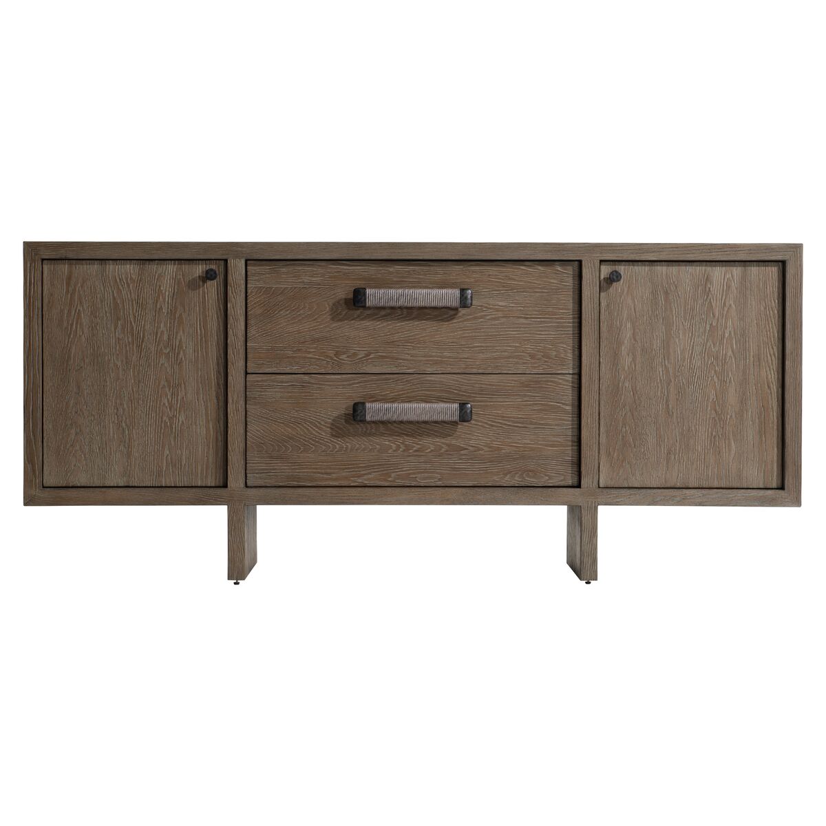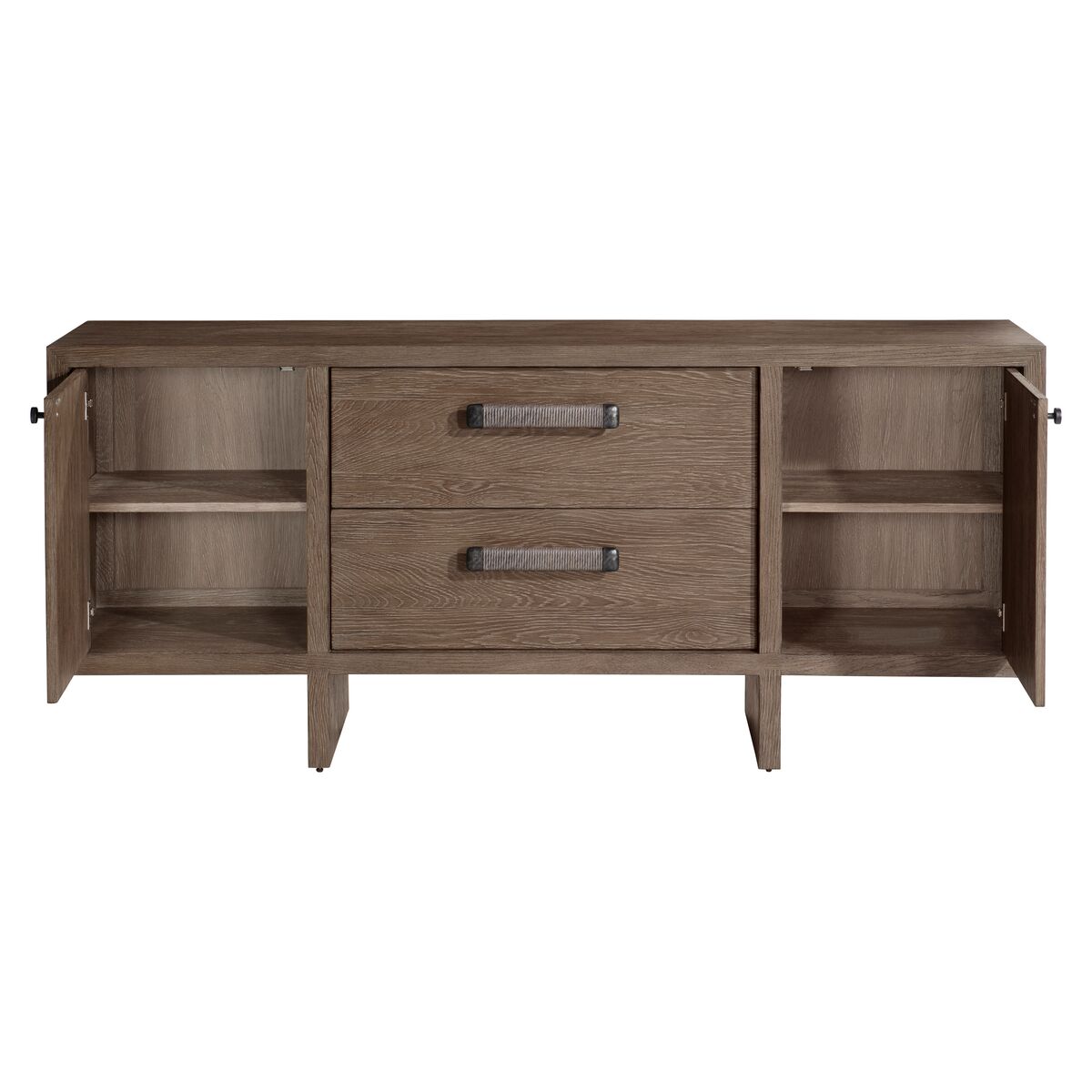 Clean lines emphasize texture and simplicity on the Casa Paros buffet. All eyes are drawn to the details: a twisted rope wrapped around the hardware, two flat leg panels and molding that frames the soft-close doors and drawers.