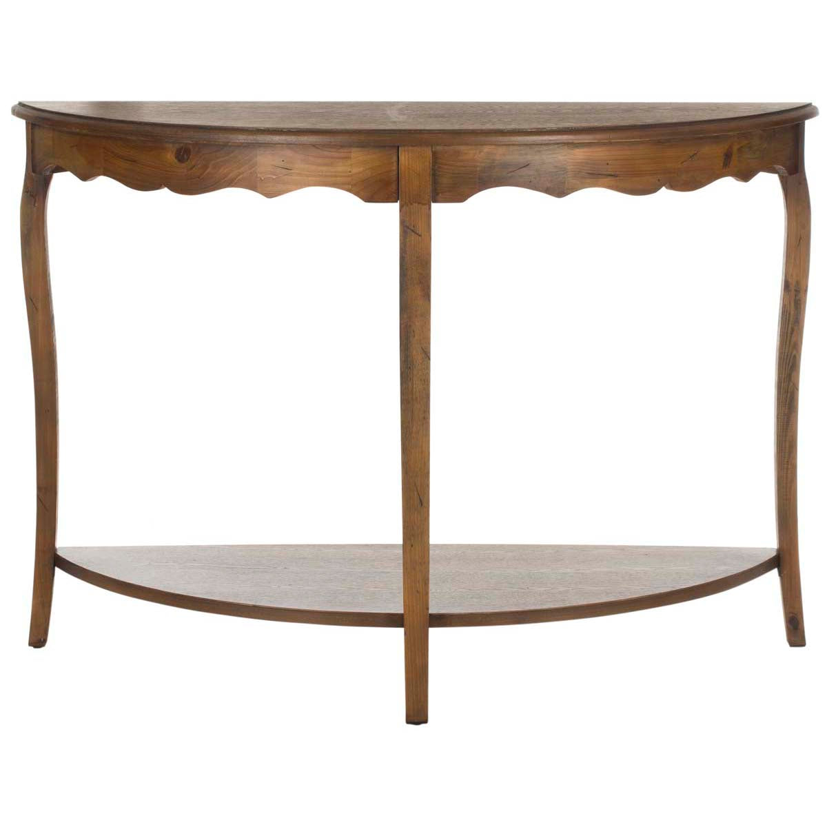 Delicate French elegance comes to the hall or entry with this lovely Christina Console. A gently scalloped apron and gently curved cabriole legs highlight Christina's romantic half moon silhouette, and a firewood finish is effortlessly sophisticated.