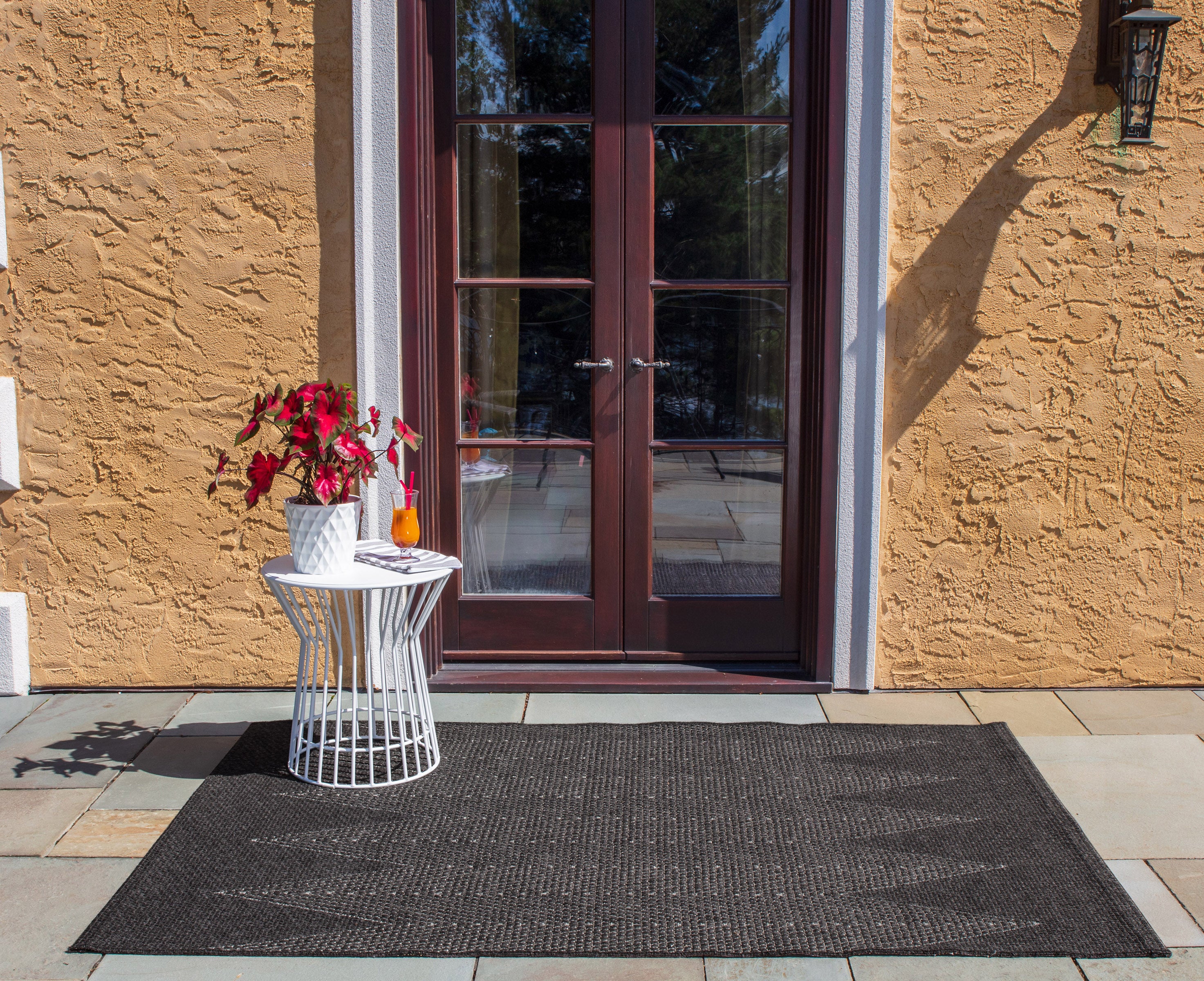 Sophistication is just a step away from the tropical style of this indoor/outdoor area rug collection. An essential design element for interior and exterior settings, each floorcovering is a fitting statement piece in natural surroundings with geometric, thatch and striated patterns that draw inspiration from island influences. All-weather polypropylene fibers soften surfaces of patios and pool decks and retain richness of color in sun or shade.