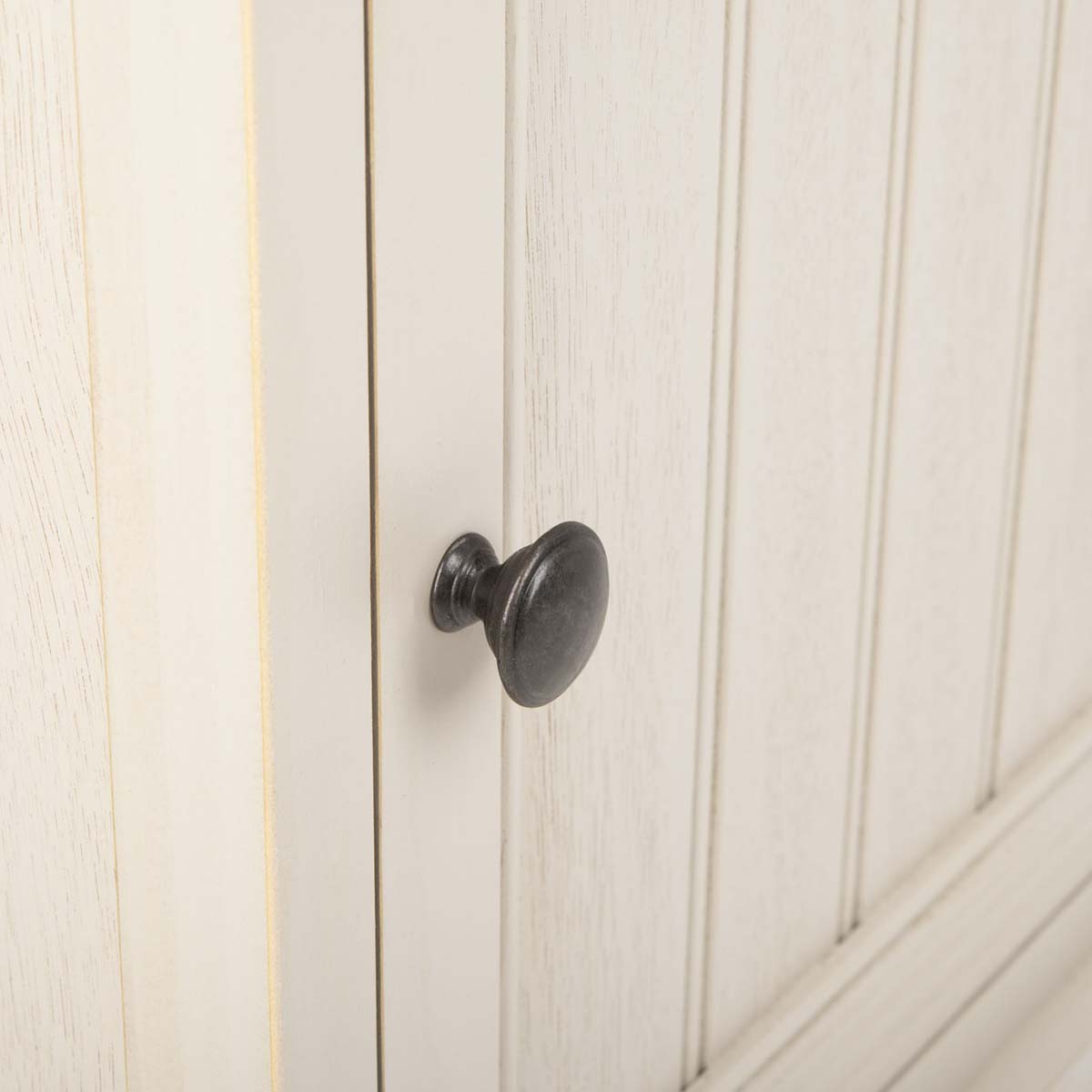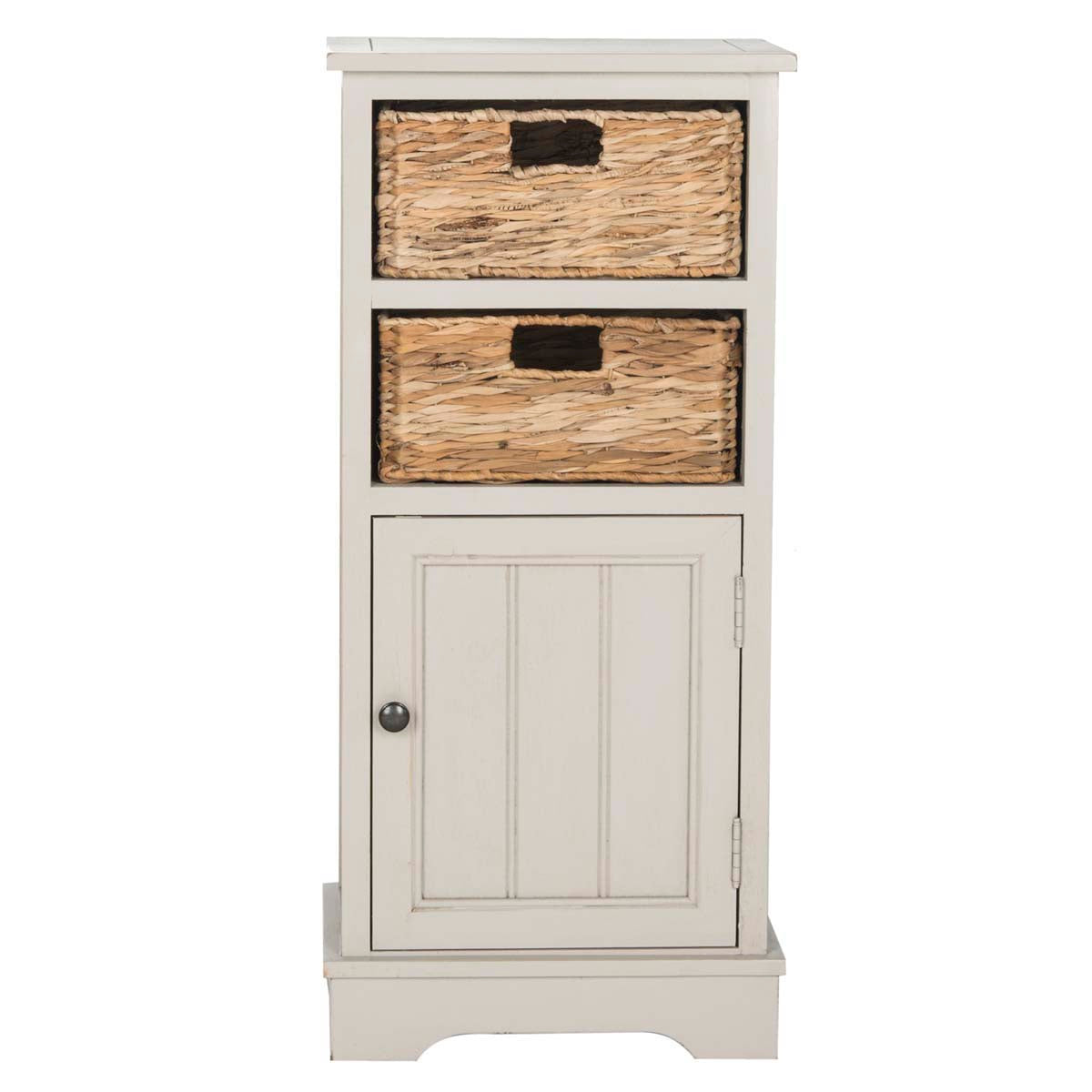 This Connery Cabinet elevates traditional farmhouse charm for today's classic contemporary interiors. Crafted of pine with wicker baskets above a closed door cabinet in a vintage grey finish, Connery keeps essentials close at hand yet out of sight.