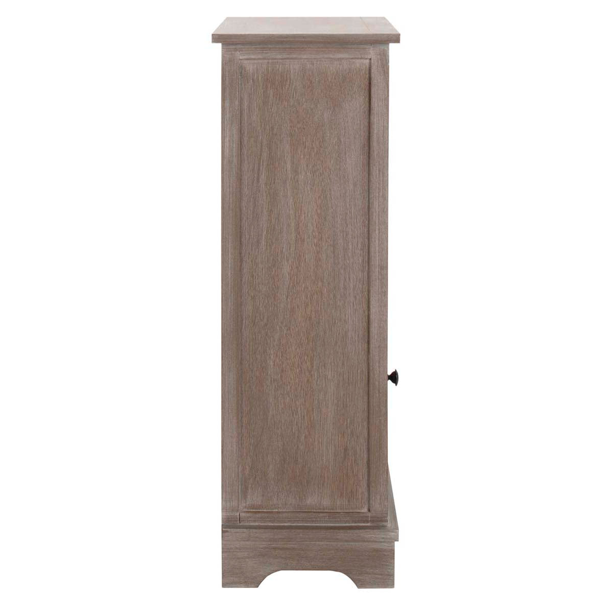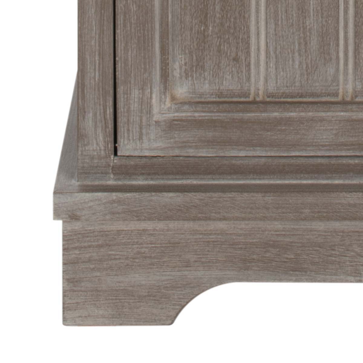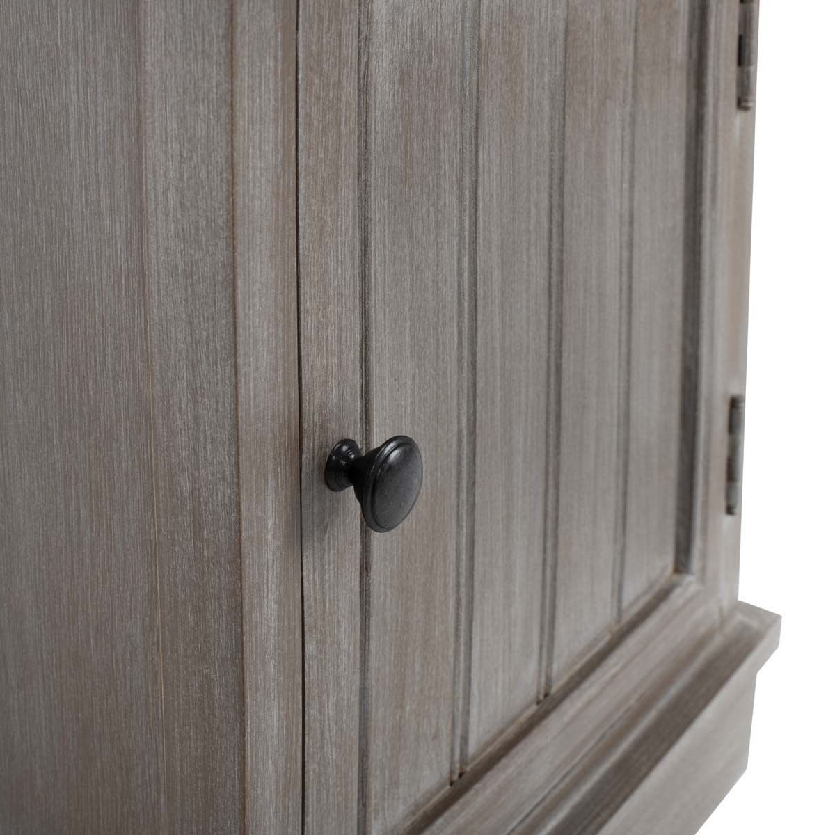 This Connery Cabinet elevates traditional farmhouse charm for today's classic contemporary interiors. Crafted of pine with wicker baskets above a closed door cabinet in a vintage white finish, Connery keeps essentials close at hand yet out of sight.