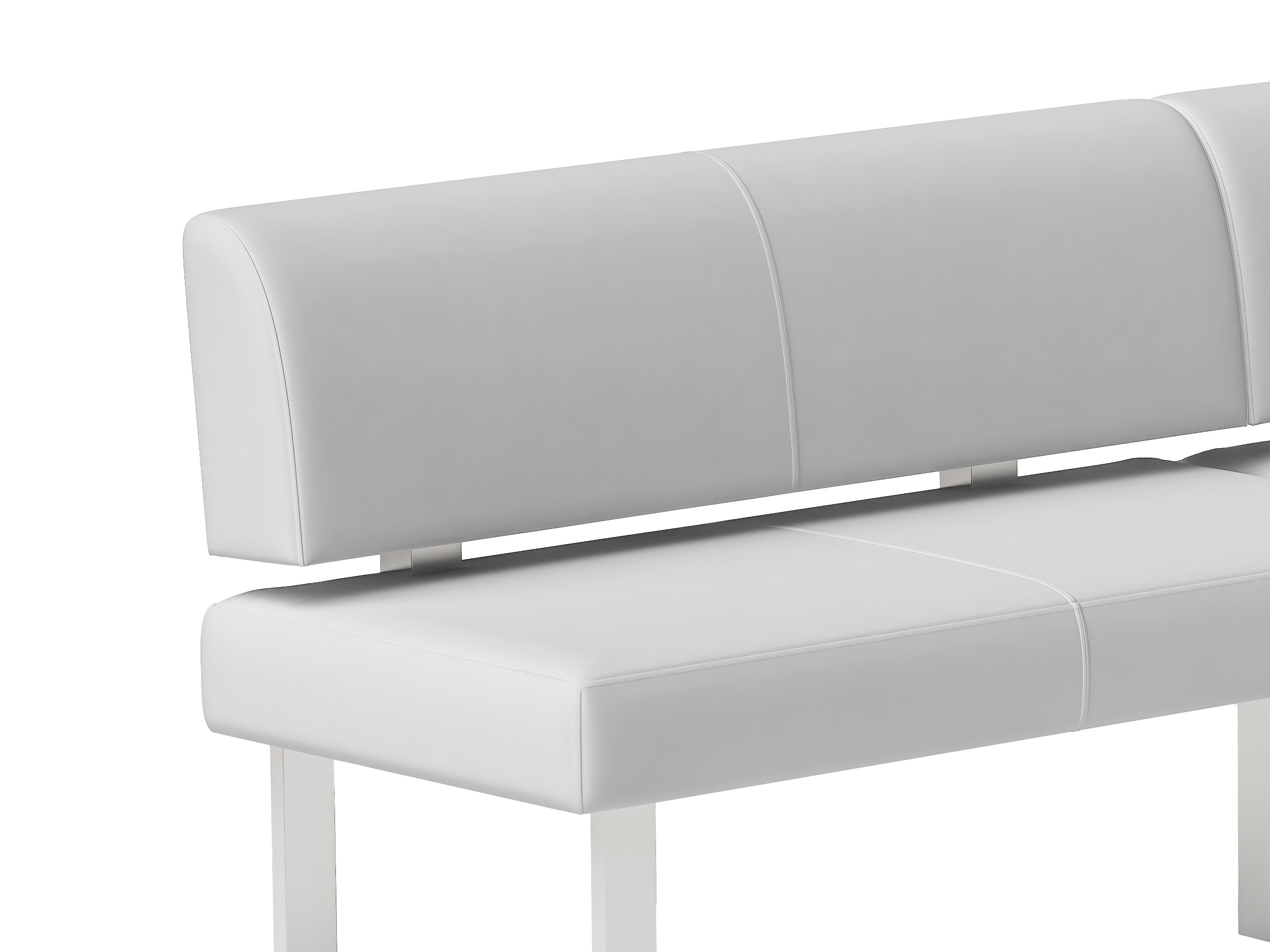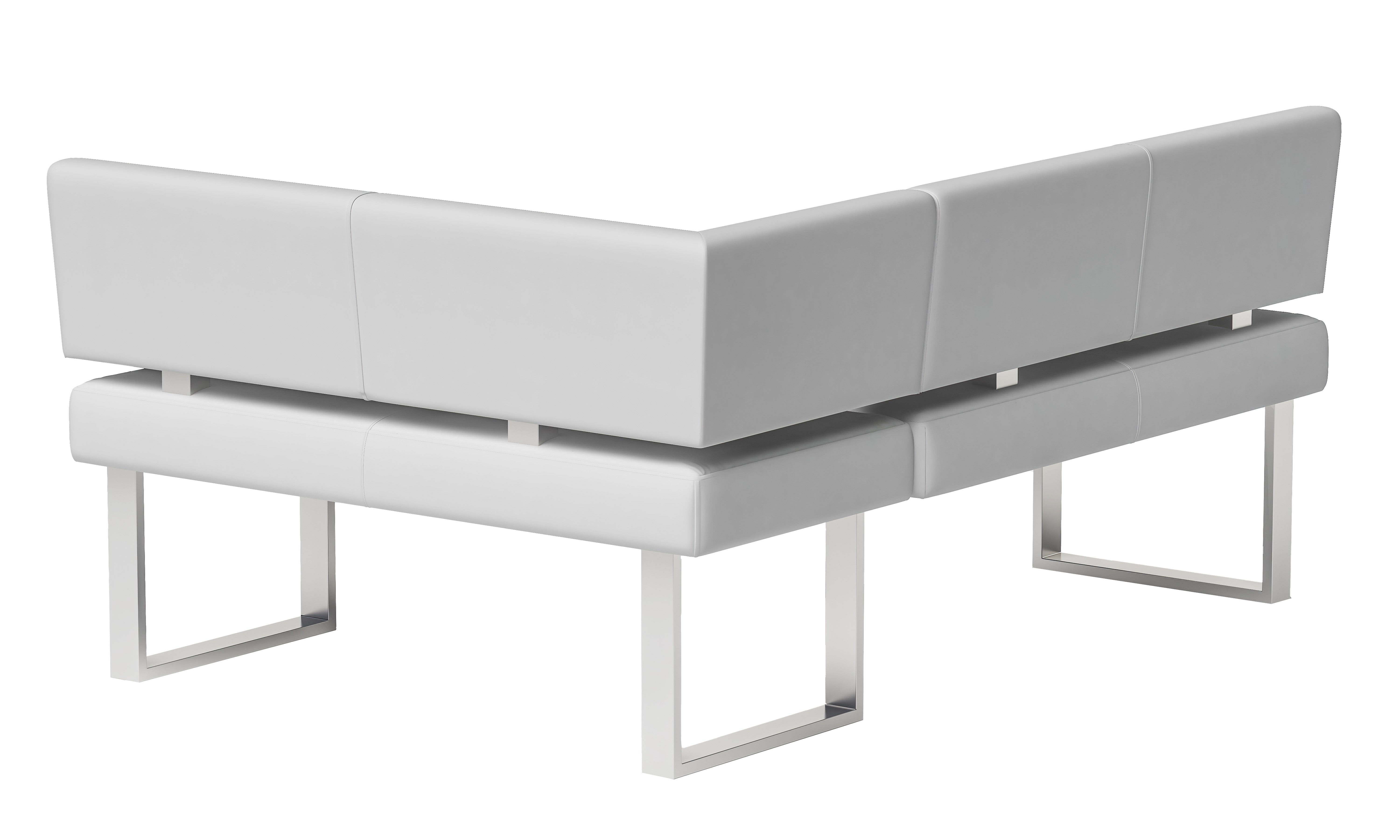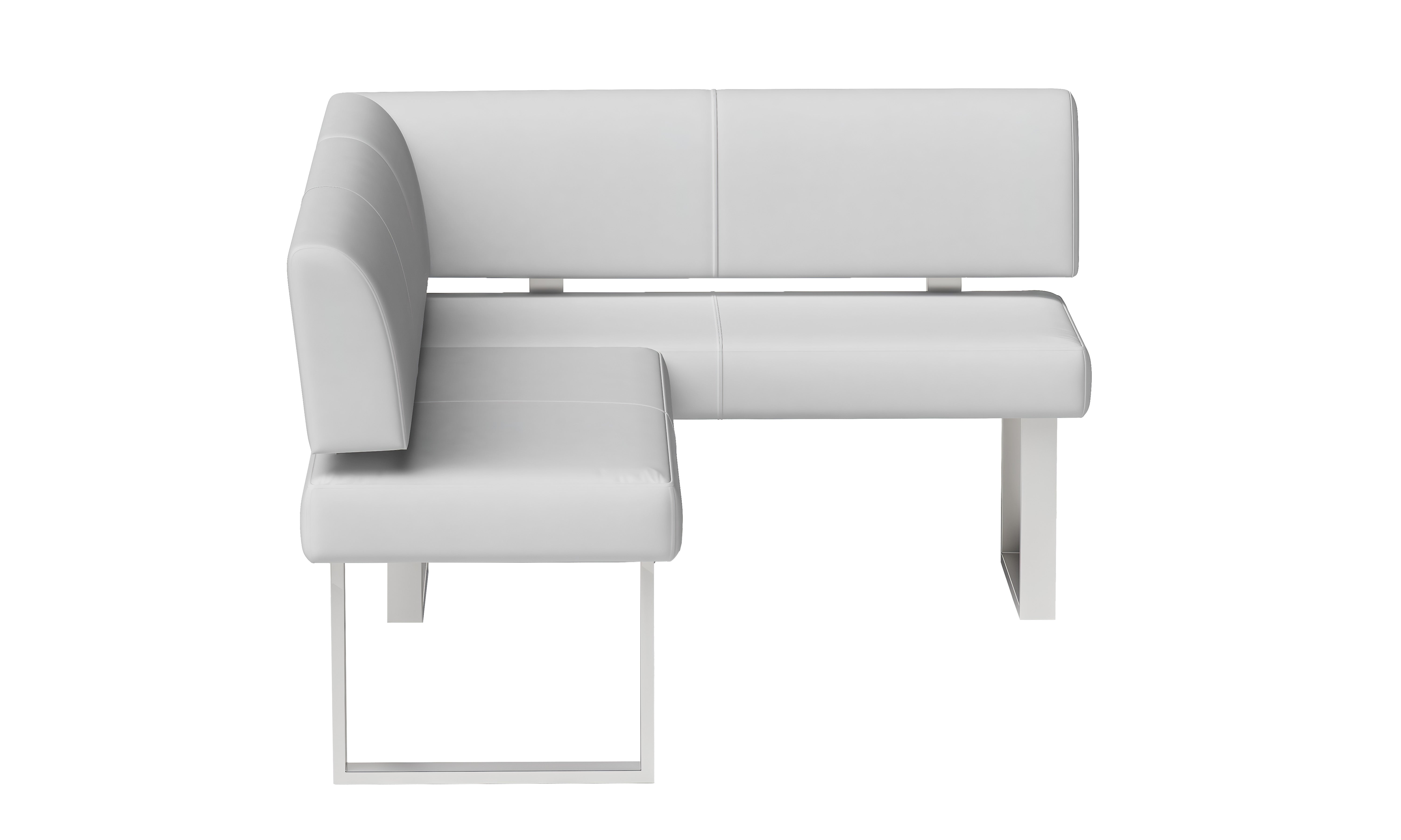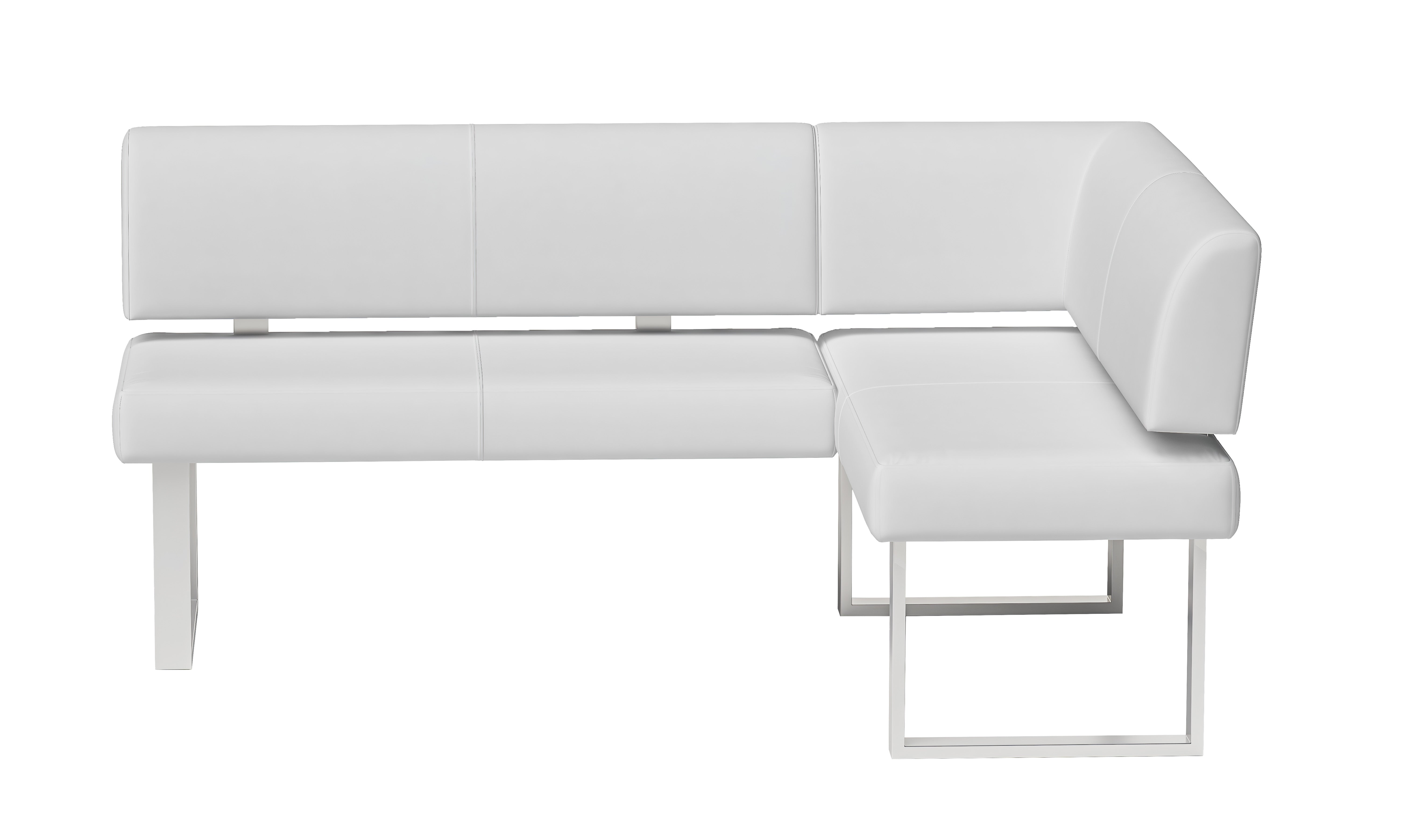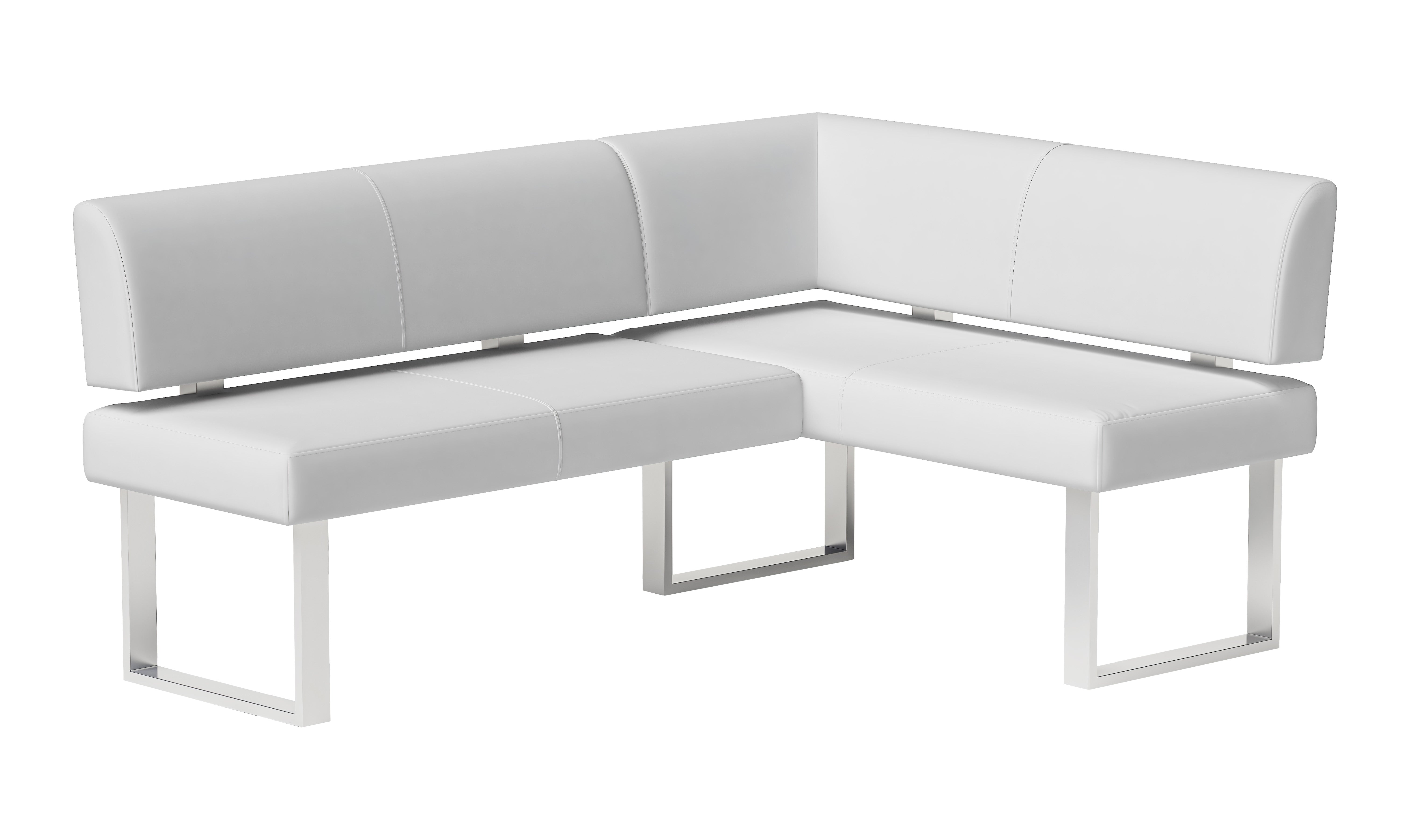 2 piece dining room set, featuring 1 table and 1 nook. Table features a white gloss finish, while the nook is upholstered in faux leather.