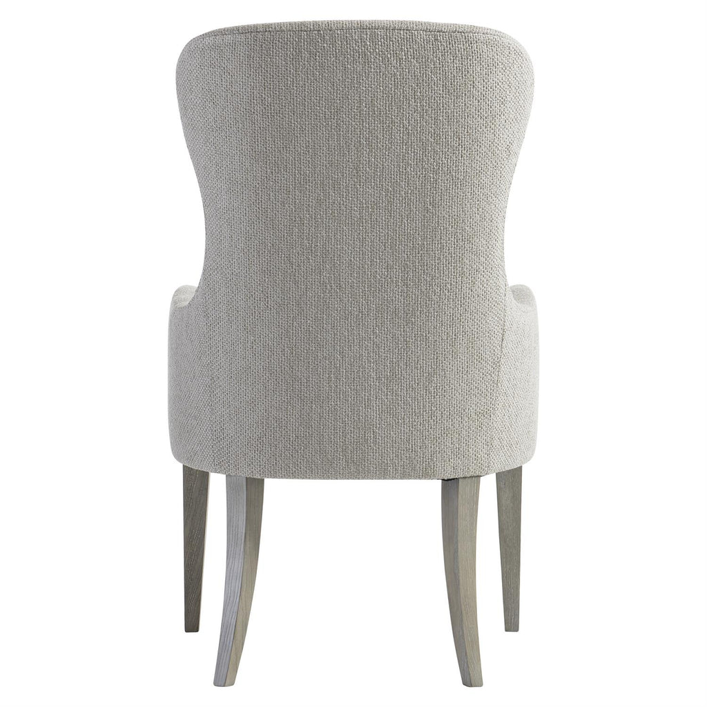 A curved silhouette gives the Cornelia arm chair an understated, quiet beauty. The traditional wingback design is updated and modernized with blind tufting and exposed wood legs in Nebbia finish.