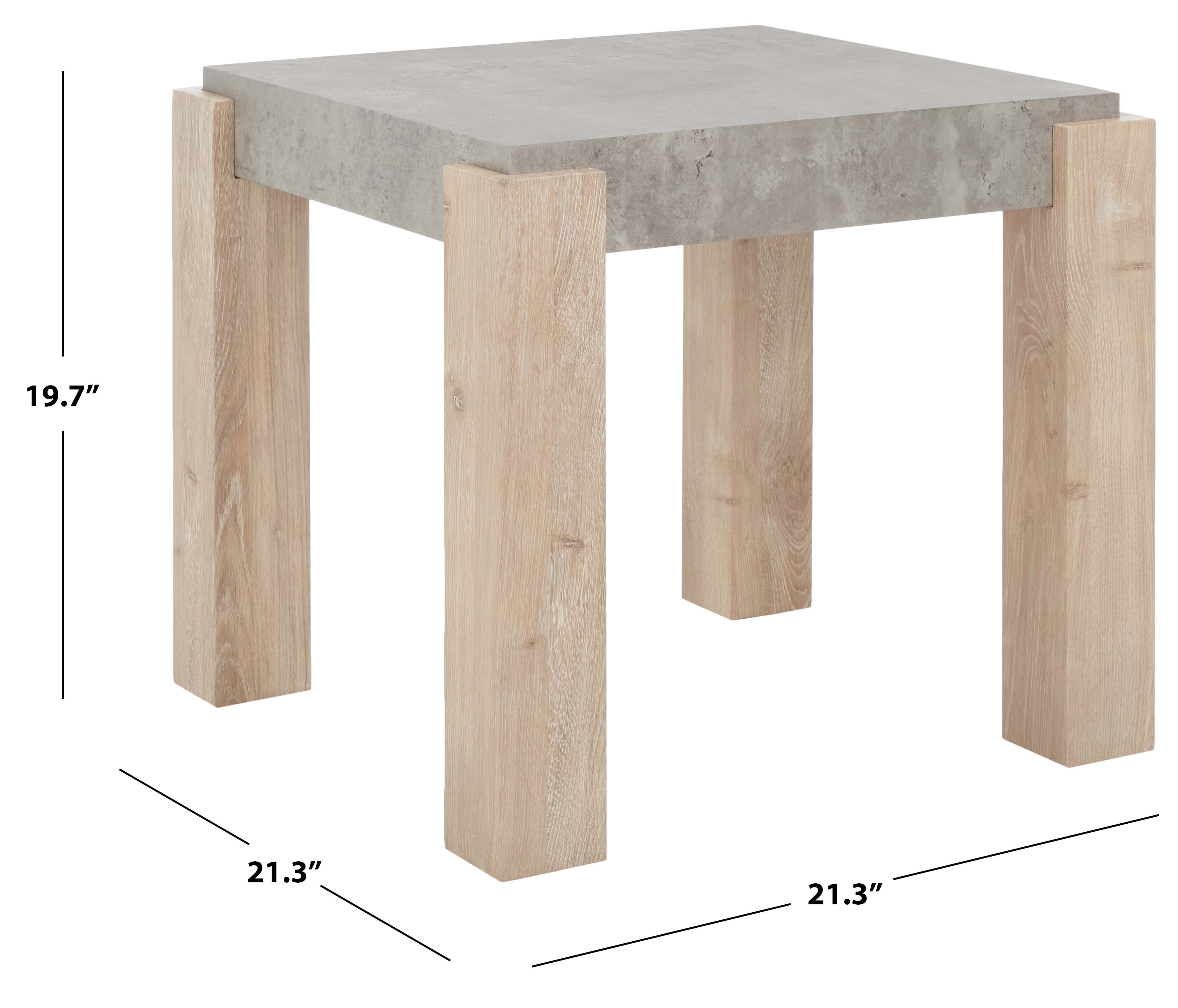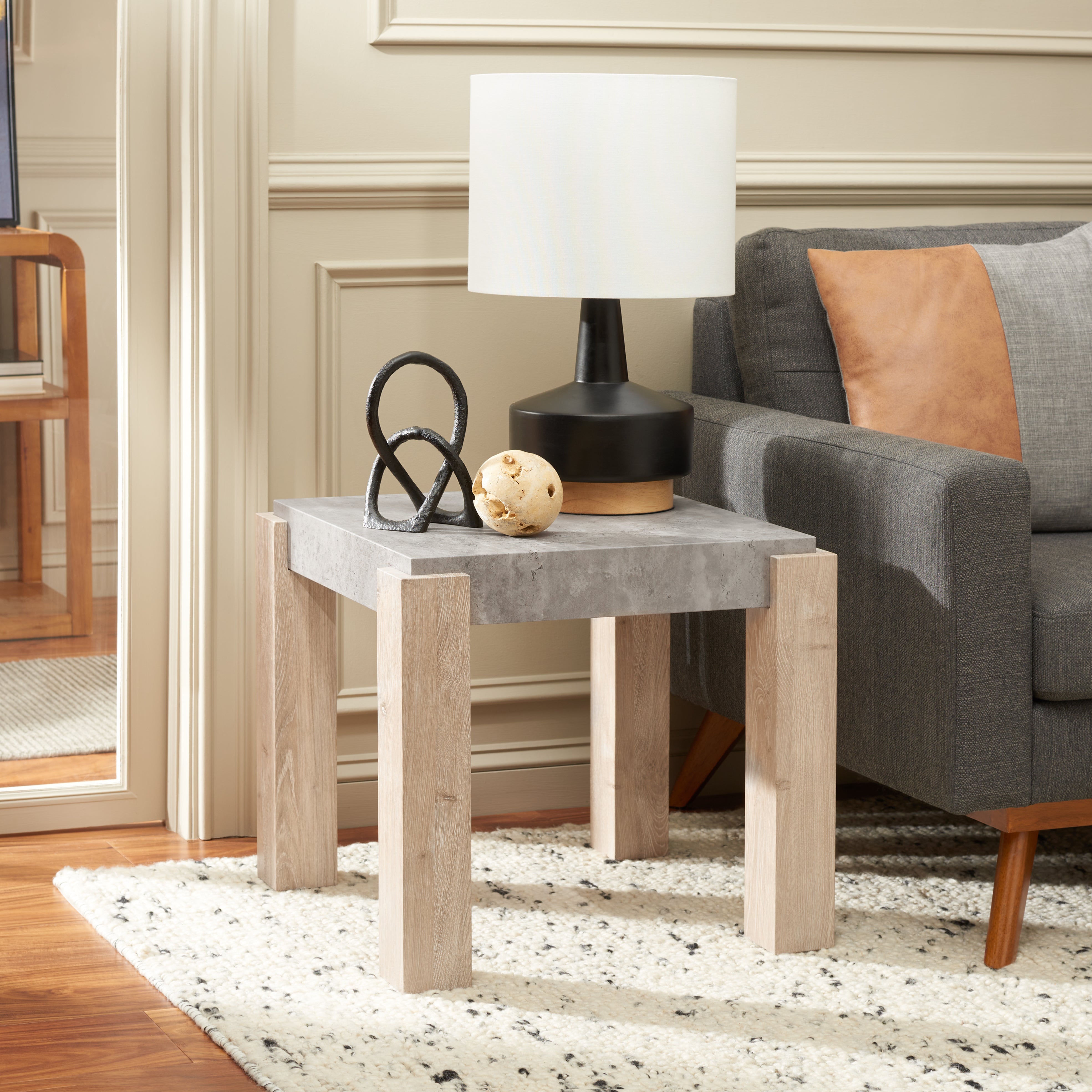 Bring architectural grace and warmth to any corner with our Coromio end table. The modern and streamlined table is accentuated with an elevated mix of finishes. The chunky tabletop is enriched showcasing the soothing texture of faux concrete veneer. Its thick pillar-style legs warm up the table with rich organic textures. Maintaining a strong and graceful presence besides a sofa or armchair, our accent table remains a convenient spot to display and keep your essentials within easy reach.