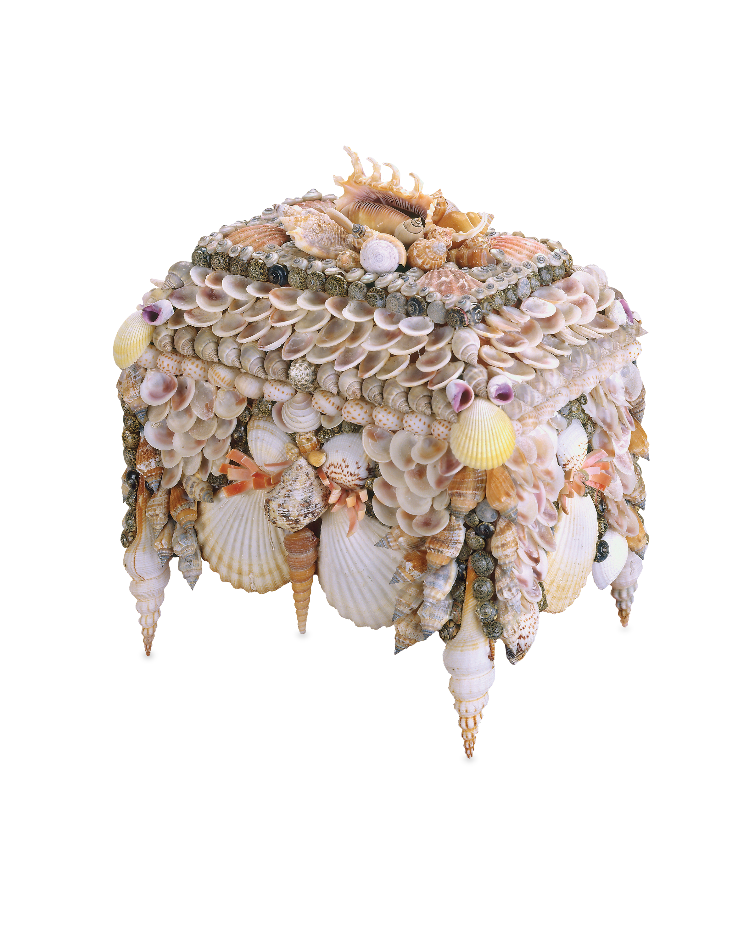 The exquisite artistry of the Boardwalk Natural Shell Jewelry Box has its origins in Victorian Shell Work. The handmade decorative accent is regally balanced on conical shell legs to enhance the delicate beauty of this decorative box. Though it is artful, it will also be a handy storage helpmate.