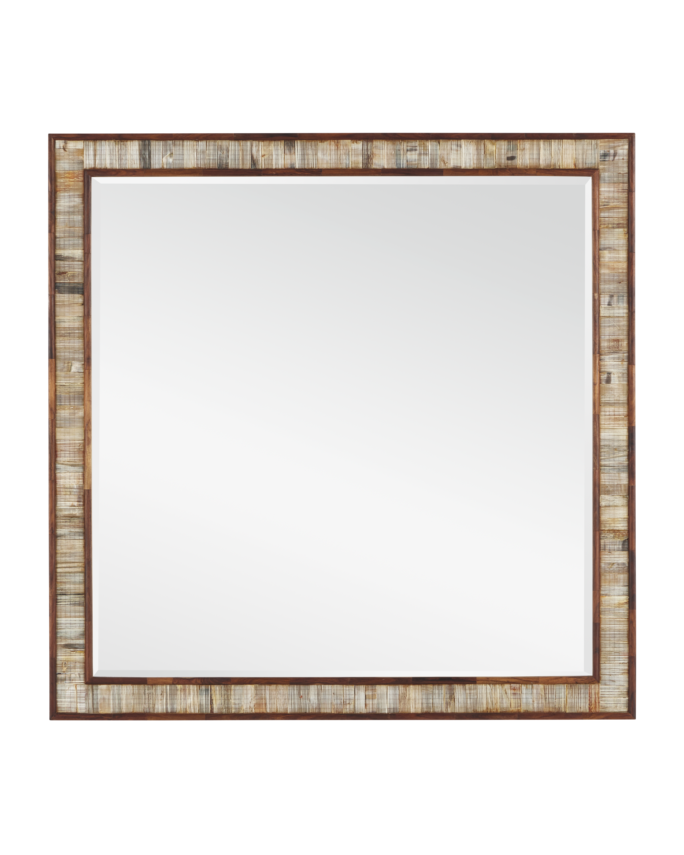 A composition of natural horn, the Hyson Large Square Mirror spotlights the detailing required to make pieces of an elemental material appear seamless. Outlined in Sheesham wood, this tan mirror is such an artisanal piece because the horn is hand-chiseled for an uptick in texture before it is inlaid to the wooden frame. The tonal striations that result from the horn's natural attributes make each mirror unique.