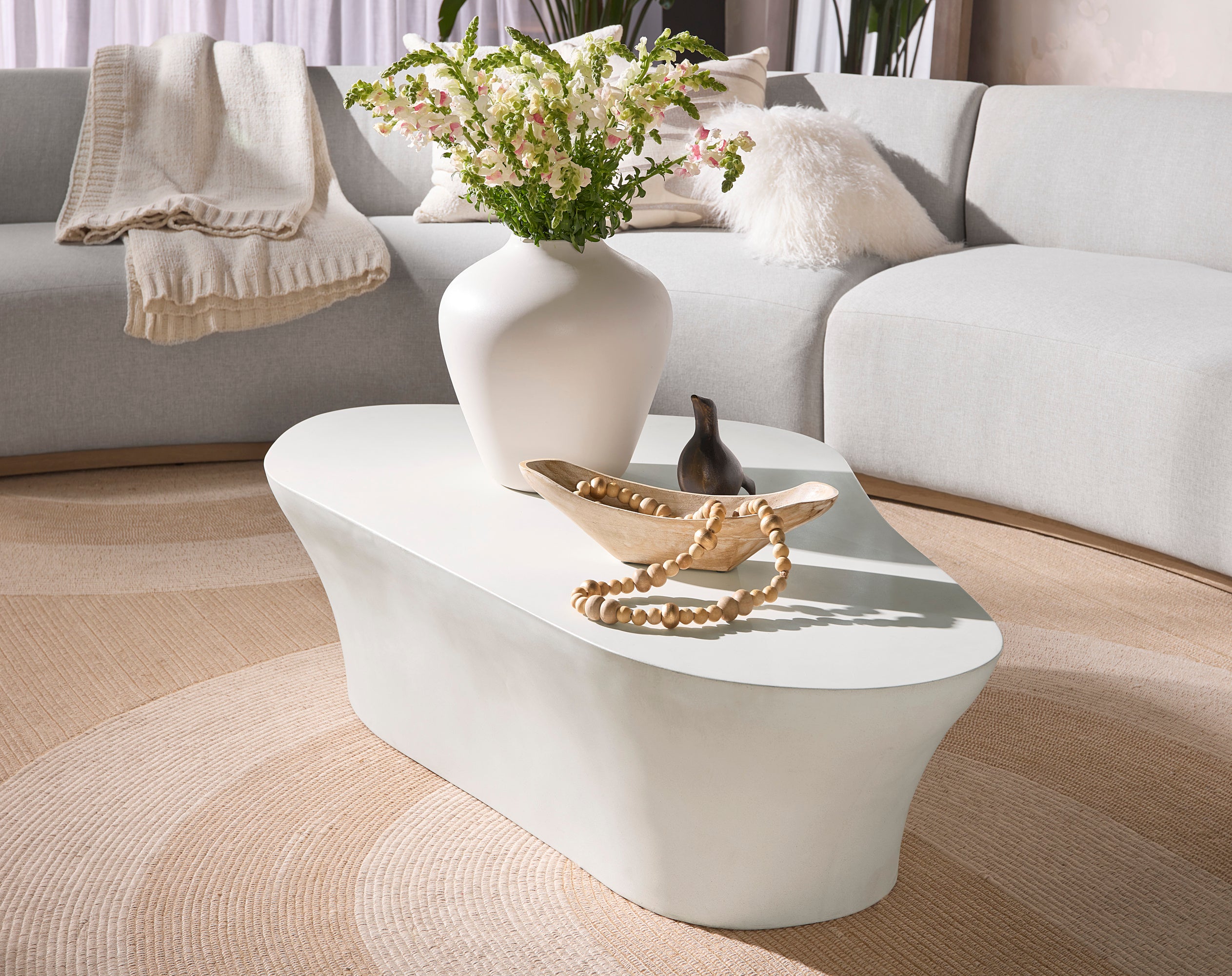With a distinct curvy design, this coffee table is guaranteed to bring allure to any space. Crafted from white concrete to provide style and durability in various applications.