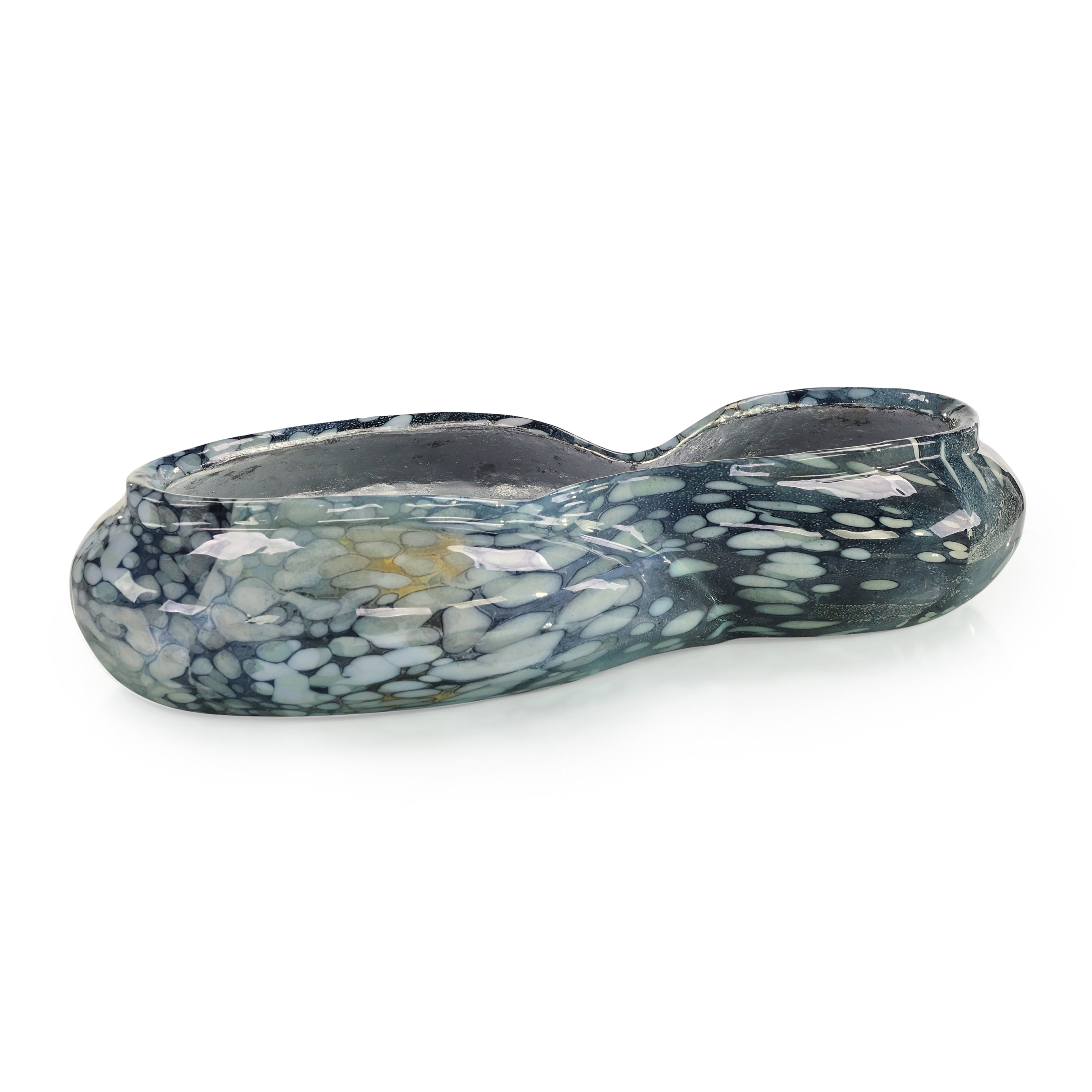 The Diana Bowl is a gorgeous home accent with an abstract look elevated through stunning tones. This aluminum bowl features a blue enamel finish, evoking tones and motifs of bubbling ocean waters. The interior showcases a textural Nickel finish, providing gorgeous contrast.