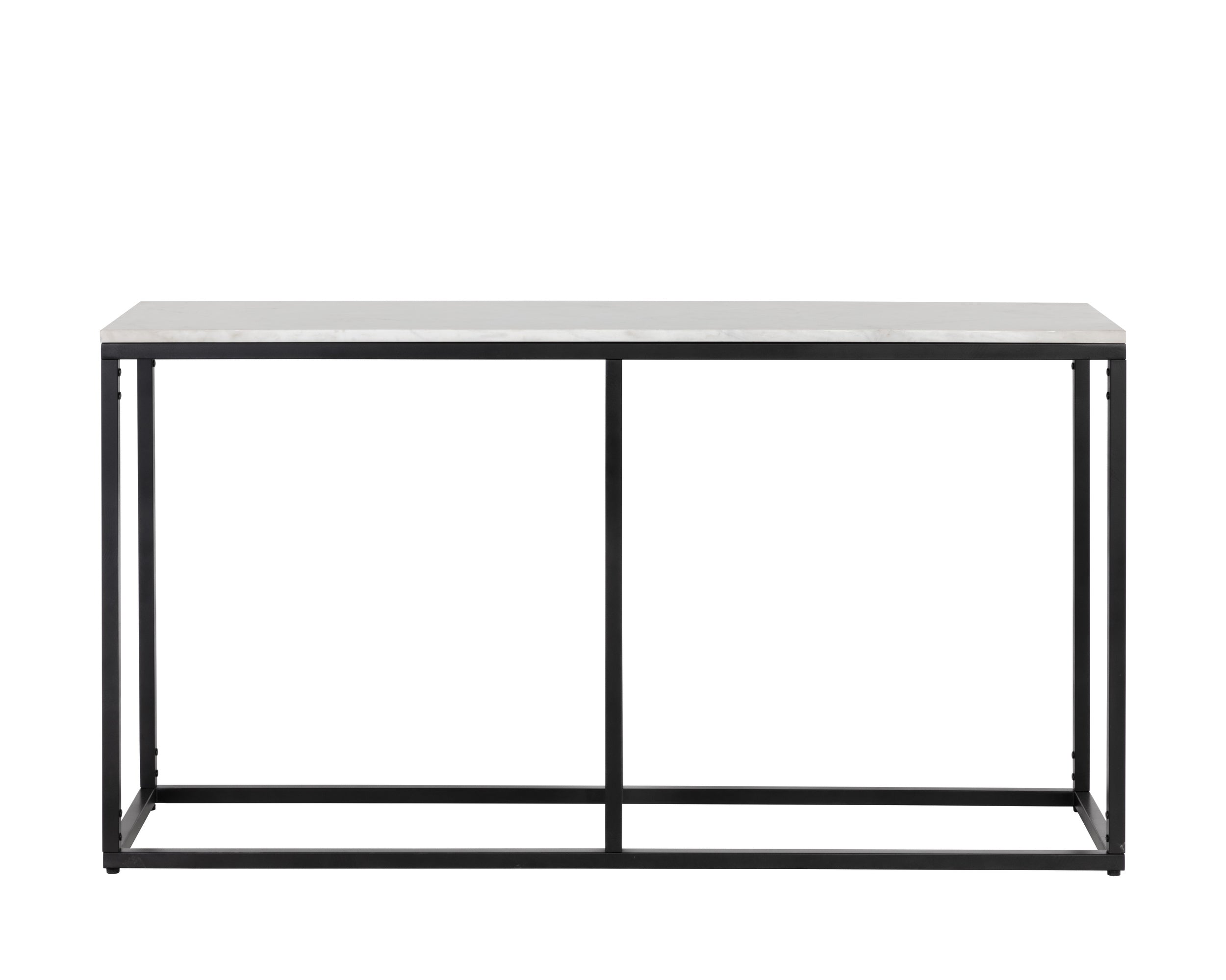 With an understated design, this modern console table is made distinct by clean lines. Features a white polished natural marble table top with a matte black powder coated steel base. Coordinating coffee and end tables also available. As marble is a natural material, unique veining, pitting, fissures, micro-cracks and colour variations are all characteristics that add to the uniqueness and beauty of each piece. Made in India. With refined craftsmanship, this design was brought to life by skilled local artisans. Due to the nature of handcraftsmanship, unique imperfections such as fissures, markings and variations in colour and shape are welcomed and appreciated characteristics for a truly one-of-a-kind piece.