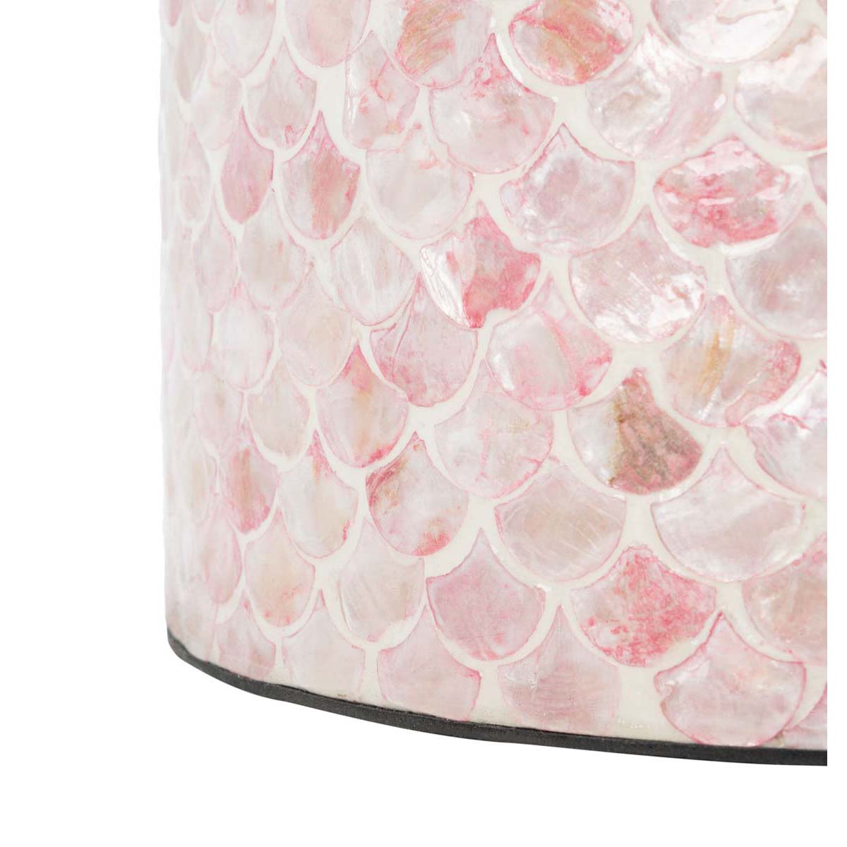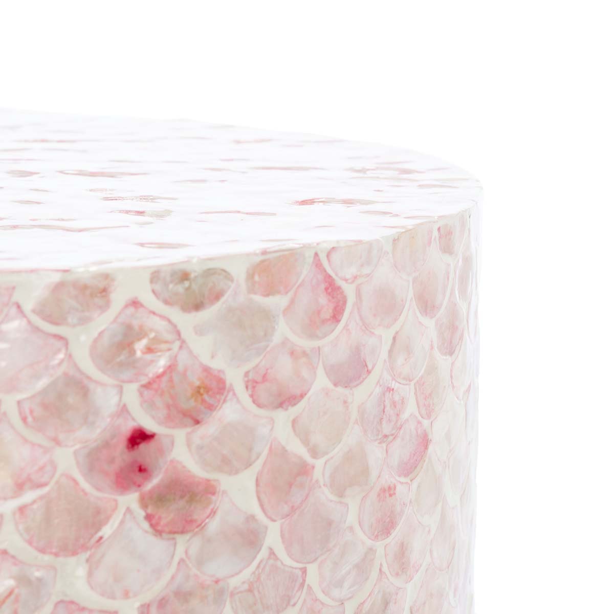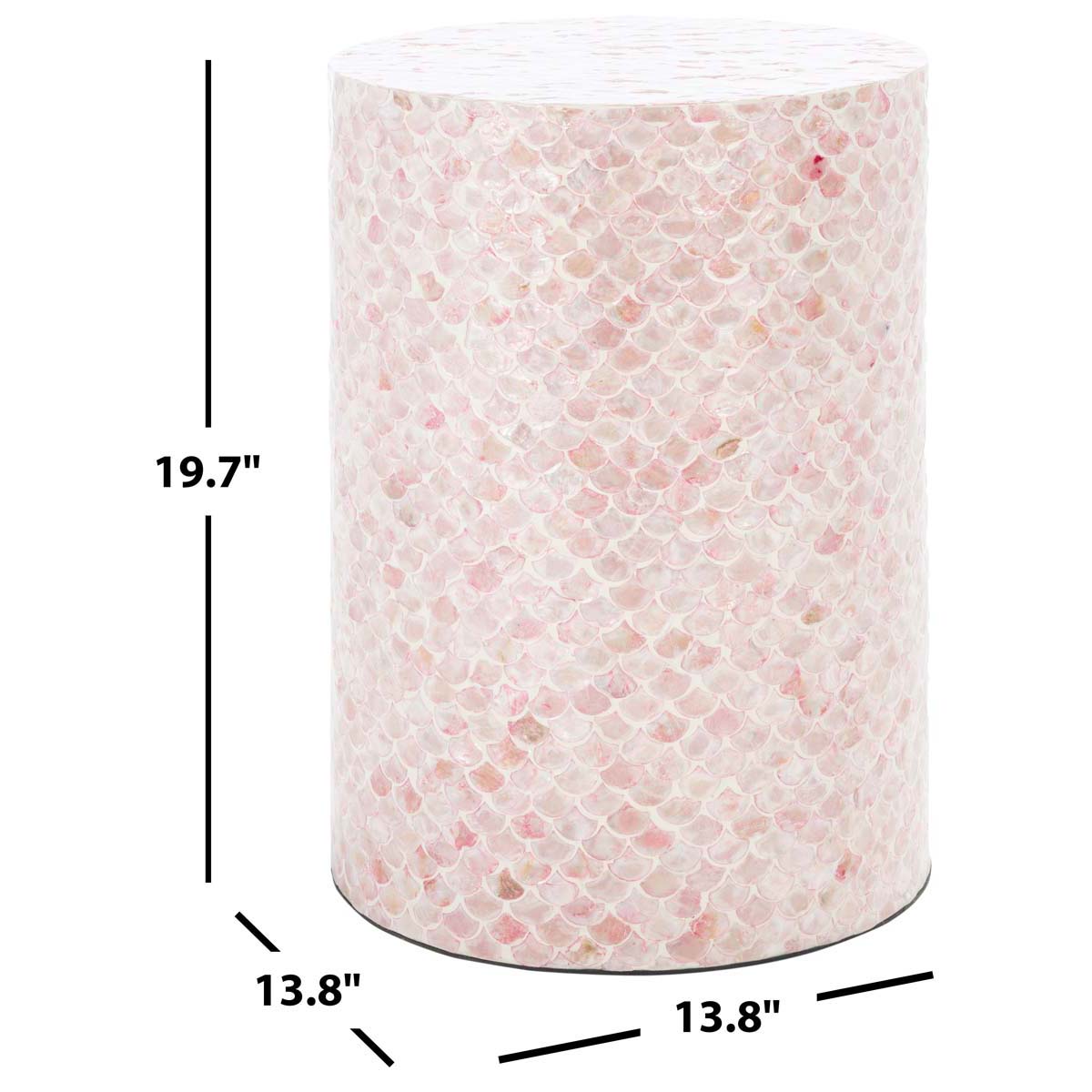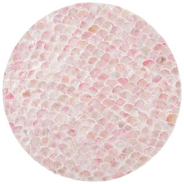 Celebrate shimmering color and uptown glamour with this Emberlyn Round Accent Table. Emberlyn's flowing, organic fish scale pattern is beautifully enhanced by its tonal pink hues, making Emberlyn a captivating centerpiece in any artistic or eclectic decor.
