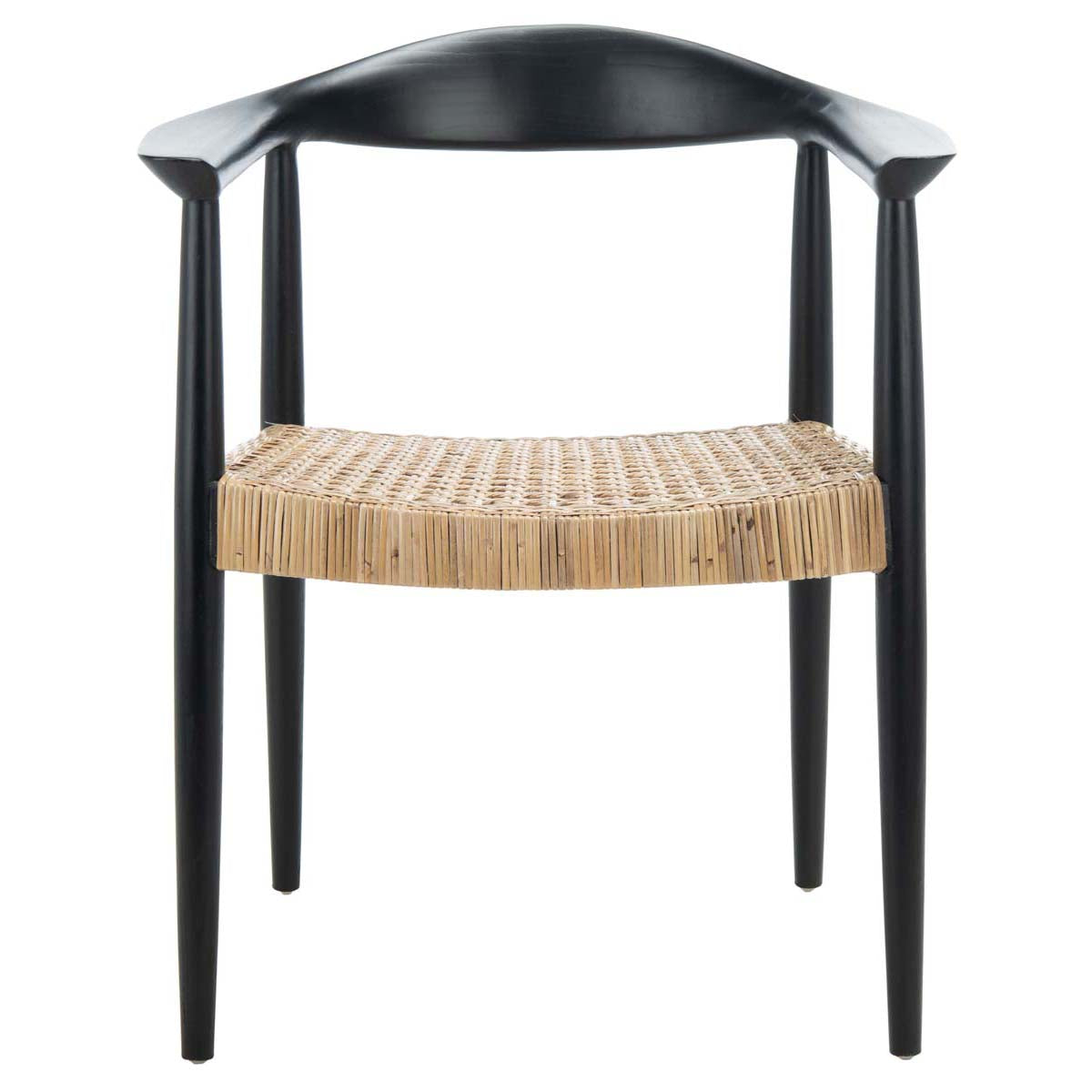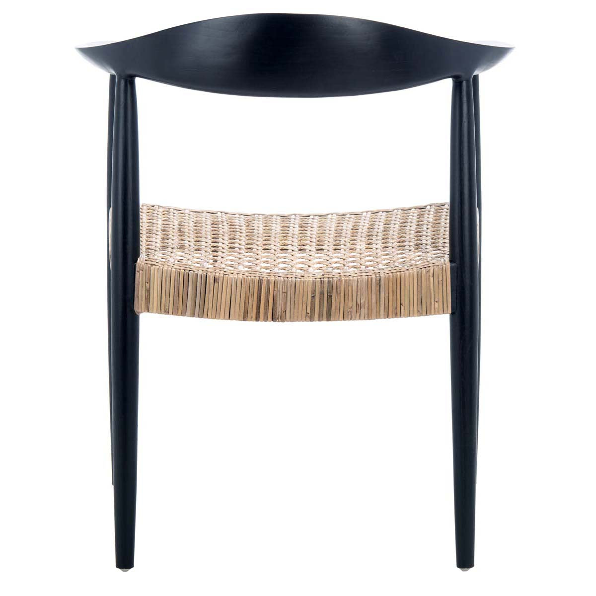 Teasing glimpses of Mid-Century chic with an iconic retro-inspired frame, this Eyre Accent Chair is a staple in any coastal-contemporary interior. Eyre?? finely carved black wood, is given additional decorative depth with its intricately woven natural rattan seat.