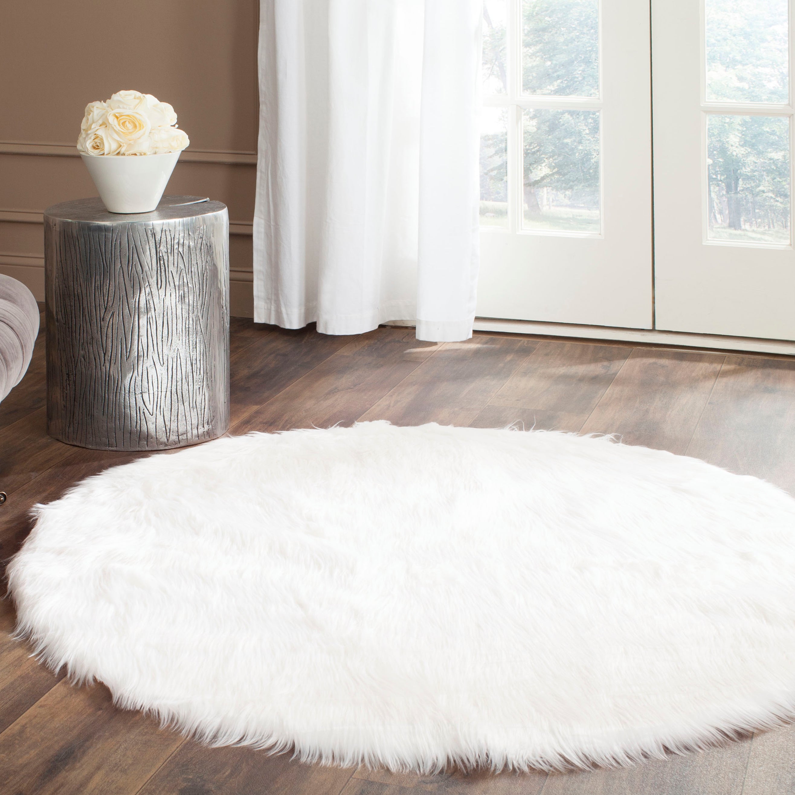 Faux Fur Sheepskin Round Area Rug, FSS235A, 121 X 121 cm in Ivory