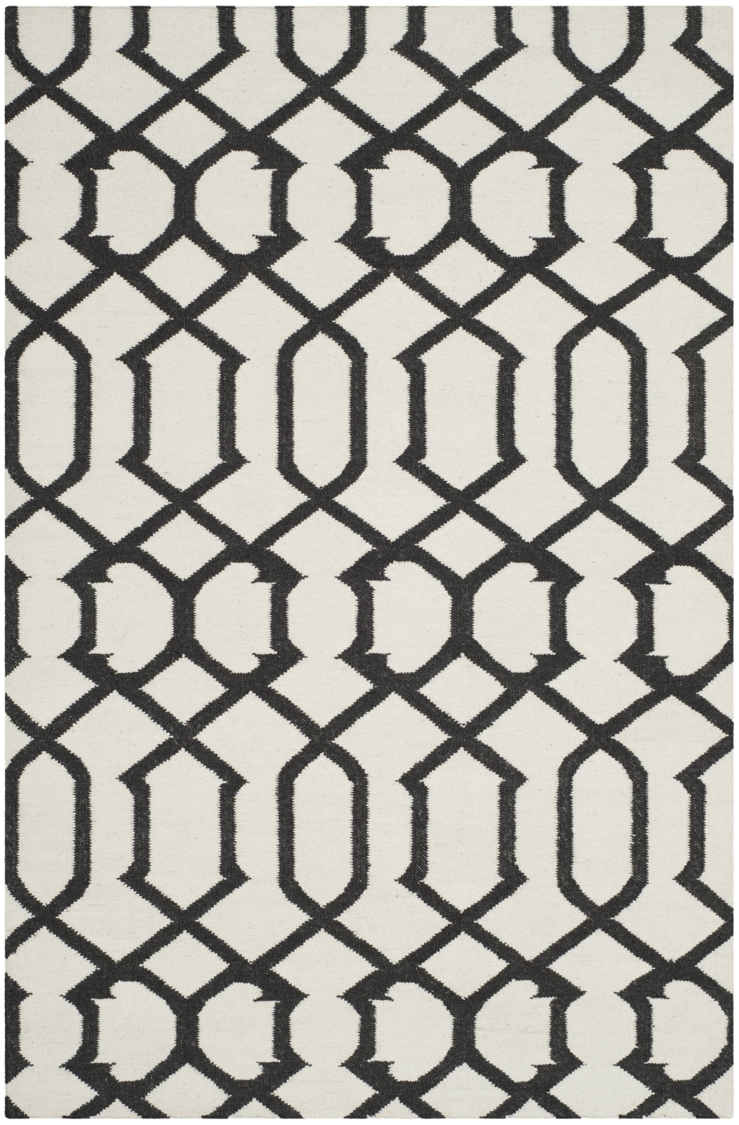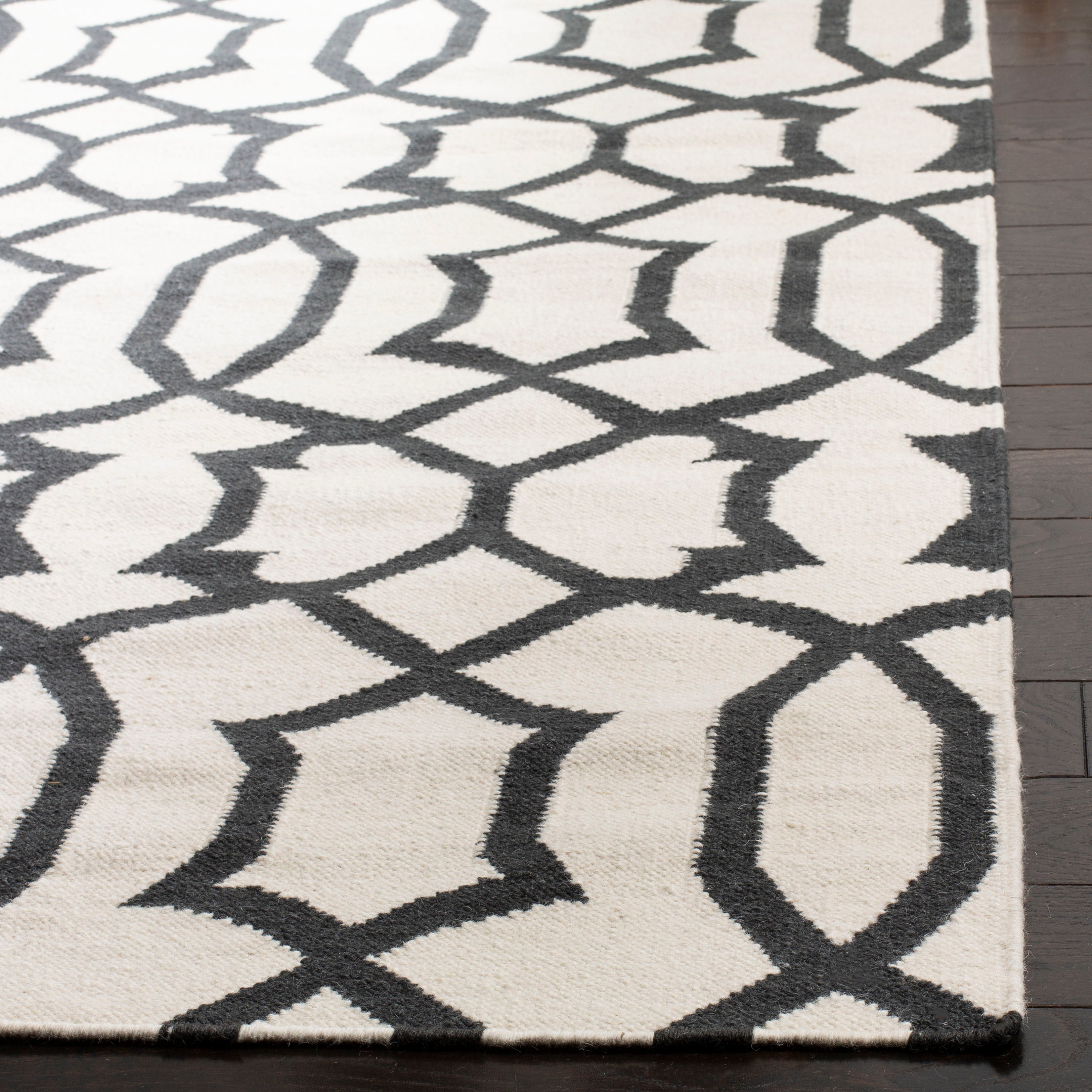 Flatweave Area Rug, DHU753D, 90 X 150 cm in Ivory / Charcoal