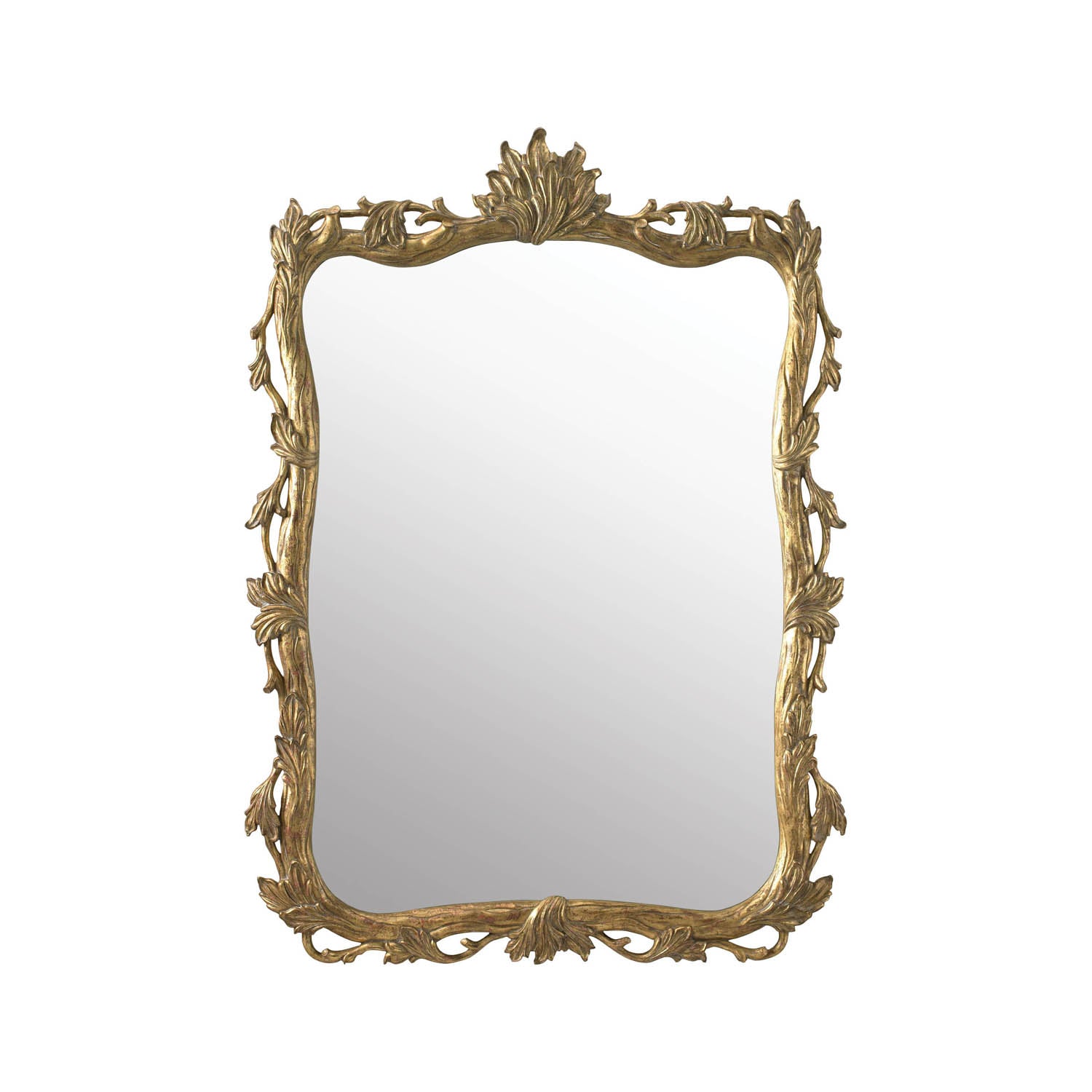 Hand Carved Wooden Mirror with Burnished Gold Finish