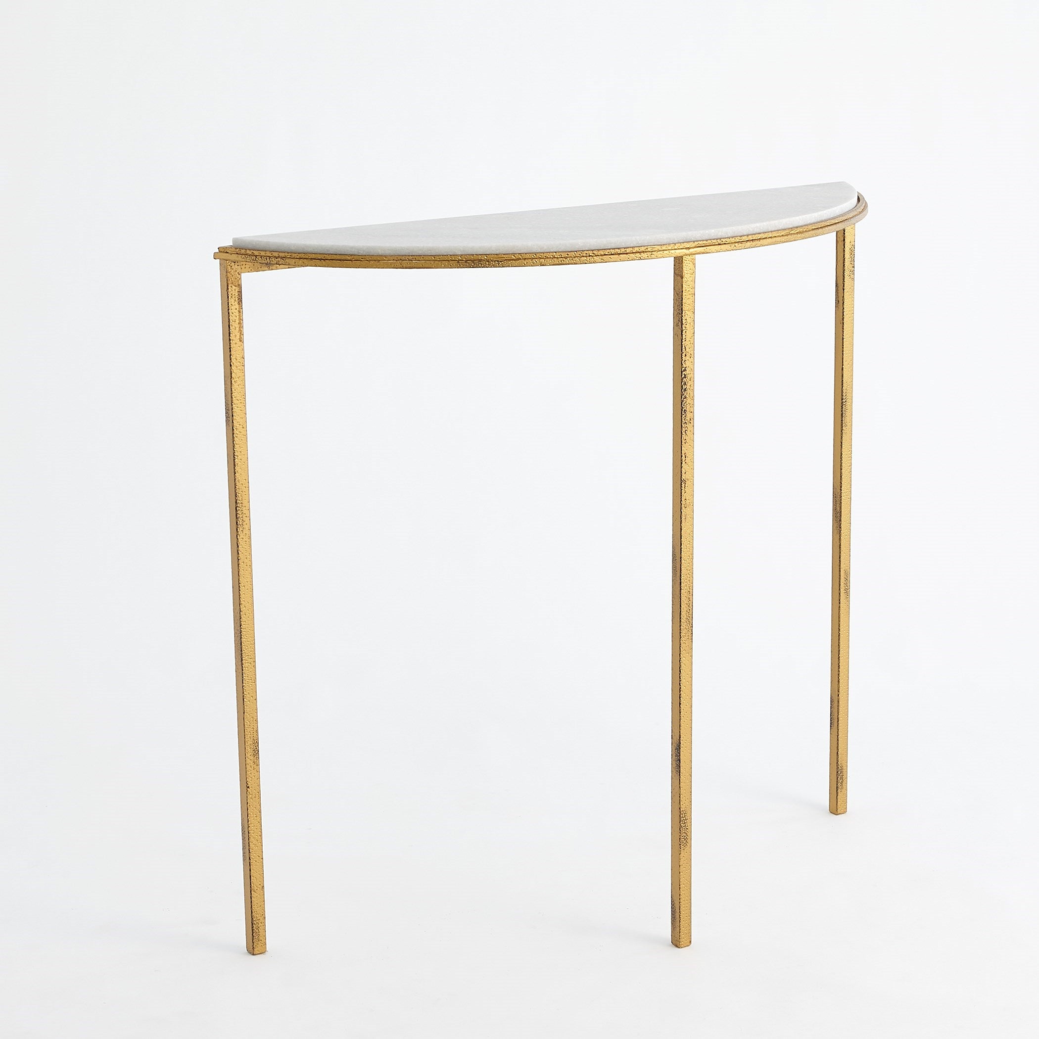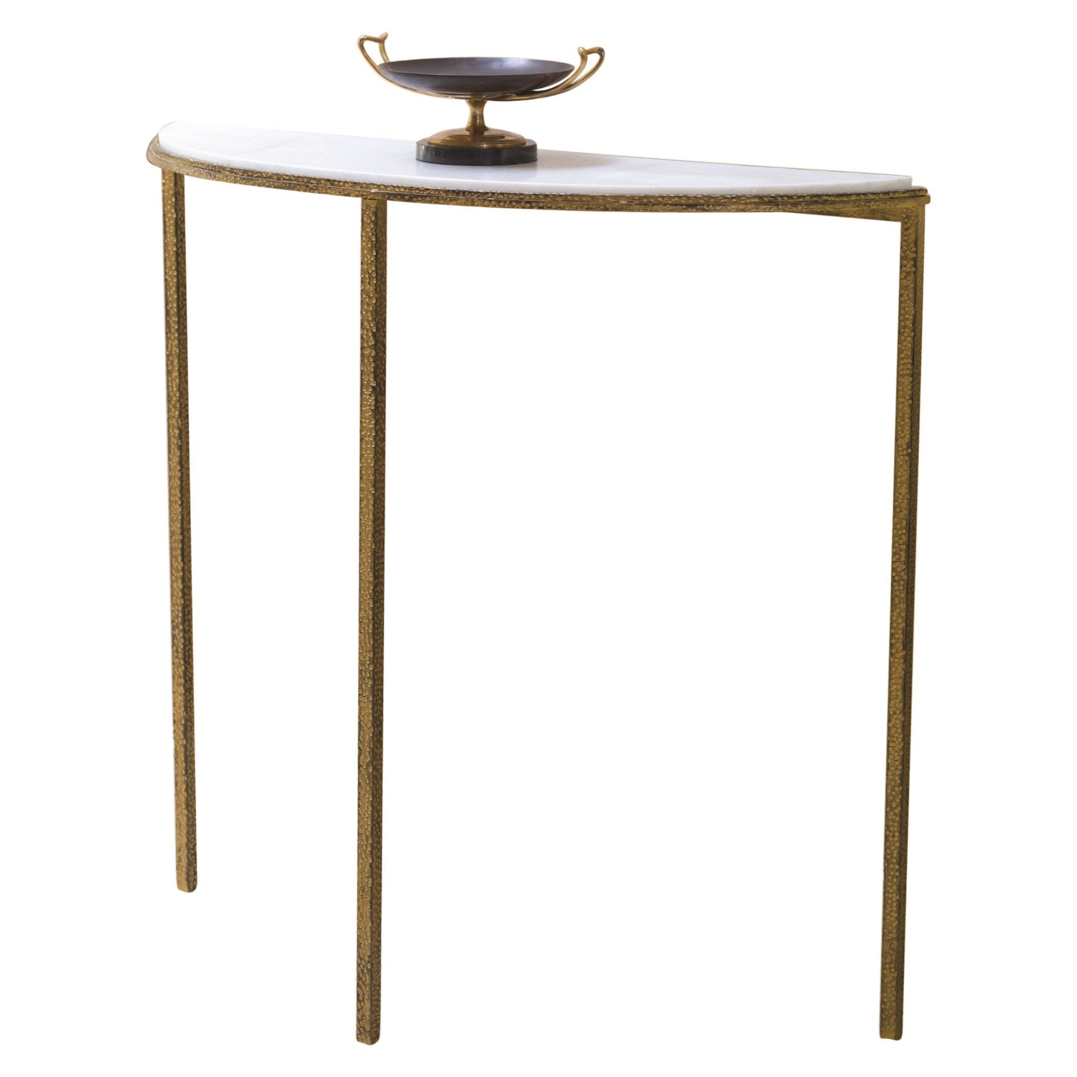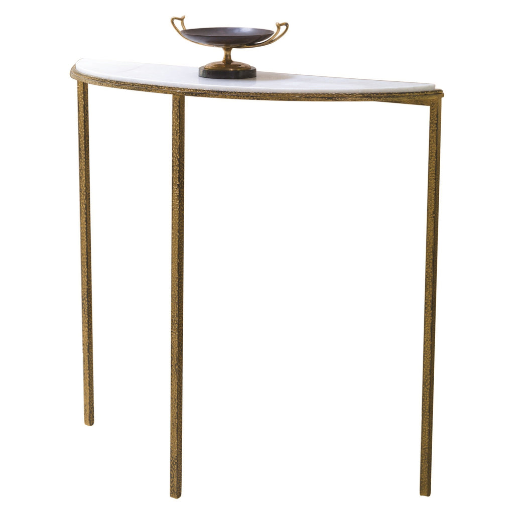 A warm golden frame with luxe hammered texture contrasts gorgeously with cool, creamy white marble. Our Hammered Gold Console is makes an elegant statement in any room.