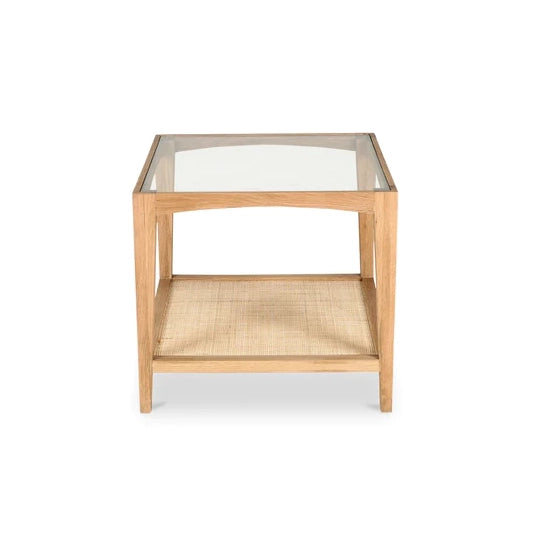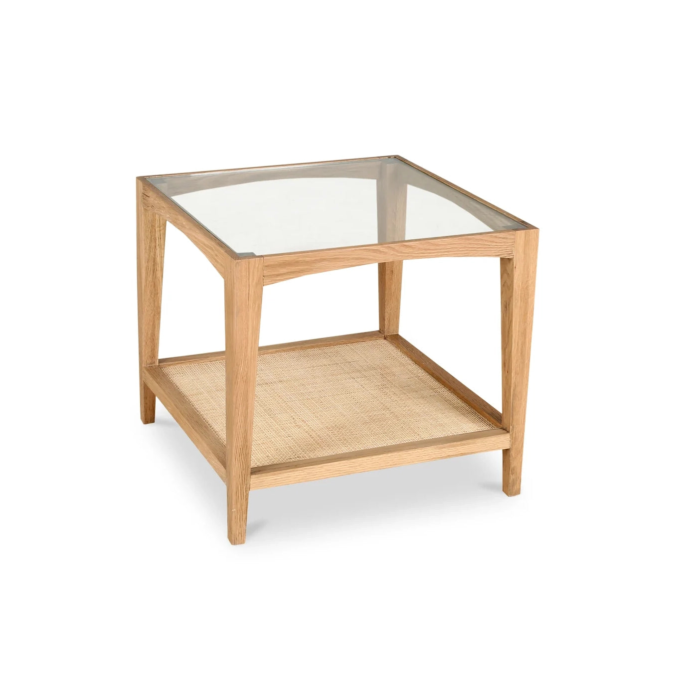 The perfect piece to weave into your space. The Harrington table's lower shelf is made from woven natural cane, while its tempered glass tabletop a lens to its airy design, all supported by a beautifully sculpted solid oak frame. Harrington is available as a coffee table or side table- pair them together for an all-natural look.