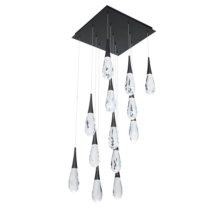 Hibiscus 13 Multi-Light Pendant (Square Canopy) in Black with Clear Optic Crystal | Schonbek - BPD21213S-BK
