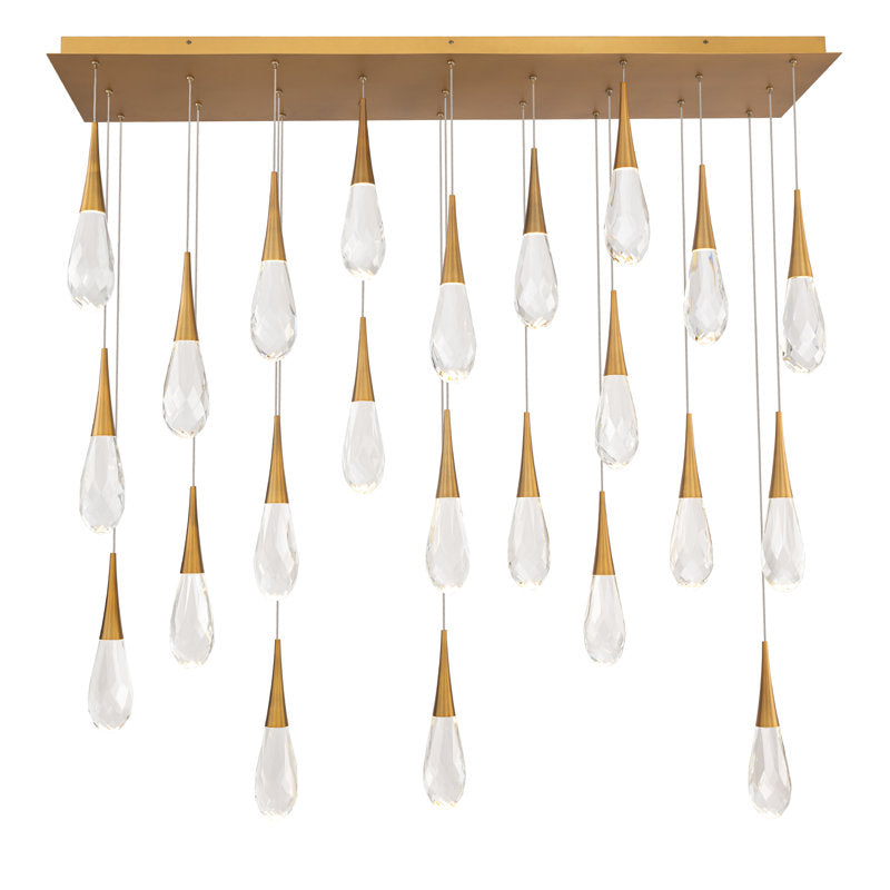 Multi Lights: Multiple height-adjustable, faceted crystal teardrop elements float in mid-air. Cascading from above and perfectly designed for illuminating foyers and dining tables while making a dramatic design statement in a range of residential and hospitality environments. Mini Pendant: Crystal fashion comes to light in unique forms. Delicate, graceful drops of exquisite crystal embraced by tapered metal forms that glow with a charming lustre. Matching crystal overlays are applied to the metal canopies for an additional touch of luxury.