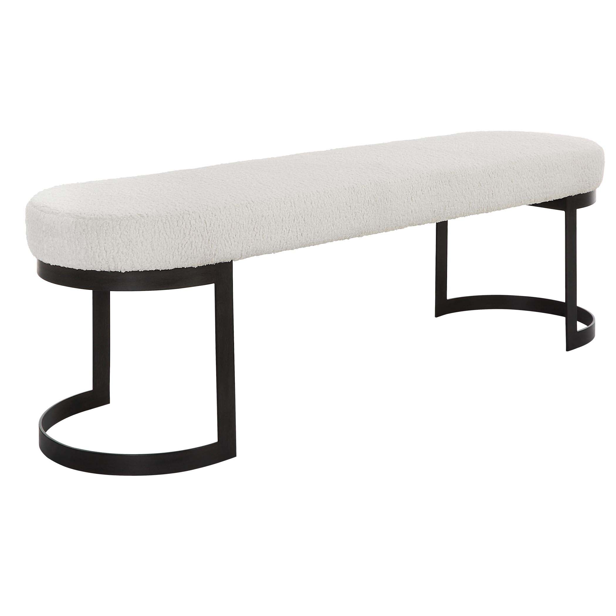 Merging Simplicity With Style, This Bench Features A Thick Hand Forged Iron Base Finished In Matte Black. The Plush Seat Is Upholstered In Natural Faux Shearling Fabric.