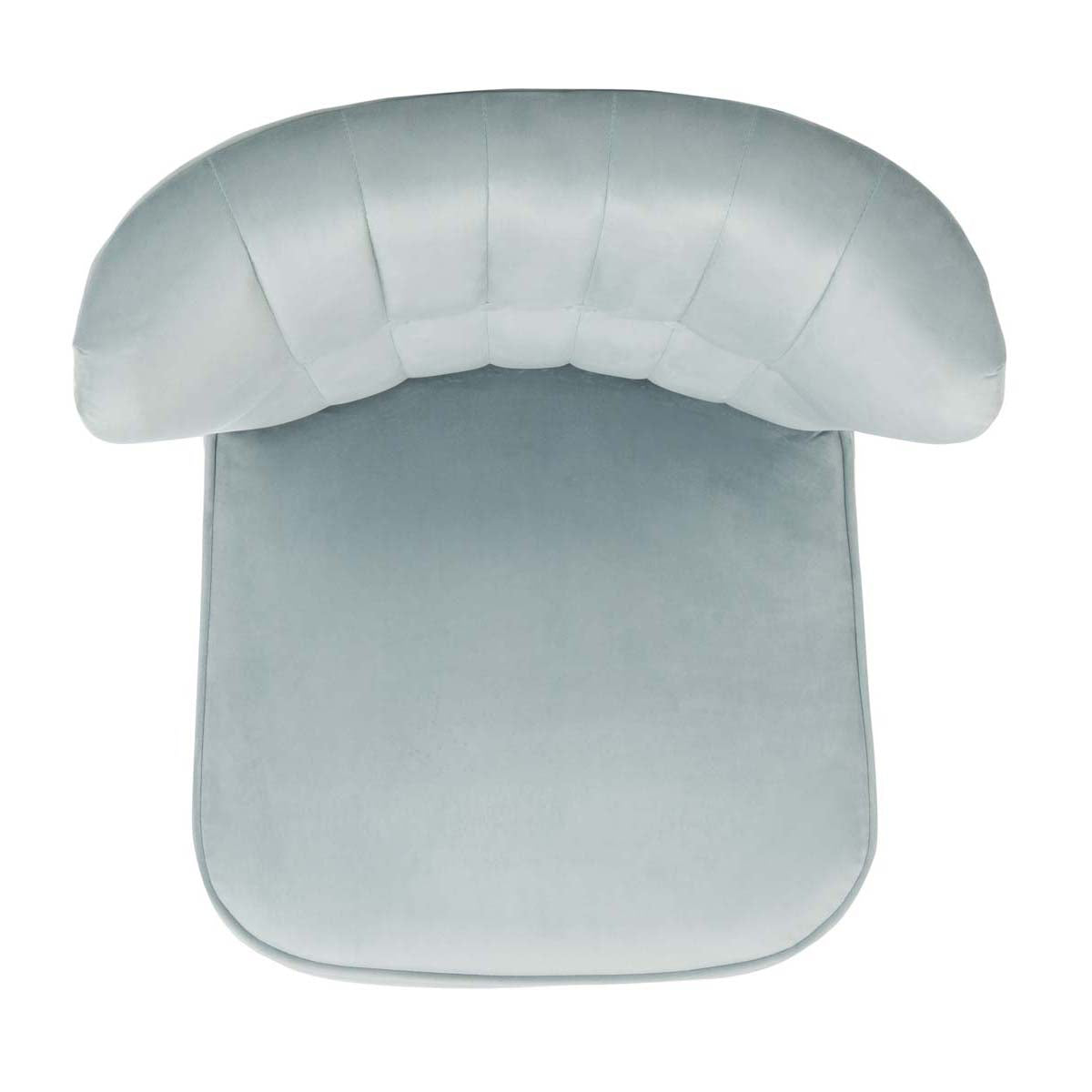 A new design classic, this Mid Century accent chair will be the most coveted spot in the living room. Created to highlight its vintage vibe, its generously filled slate blue velvet upholstery complements the natural wood finish on its retro style legs.