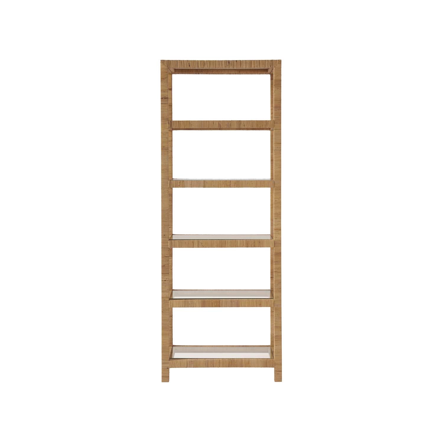 With five glass display shelves designed within a wrapped rattan frame, the Long Key Etagere offers both a gentle repose as well as a convenient space for books, small trinkets, and other home accessories.