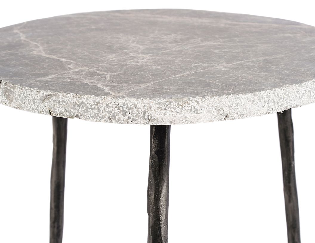 KAII Low End Table Grey Marble Hammered Edge/Black Iron Legs | Mobital - WEN-KAII-GREY-LOW