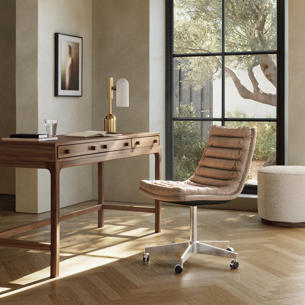 Paired back and fashion-forward, this minimalist desk chair offers maximum comfort. Inspired by workspaces of the '50s and '60s. Height not adjustable.