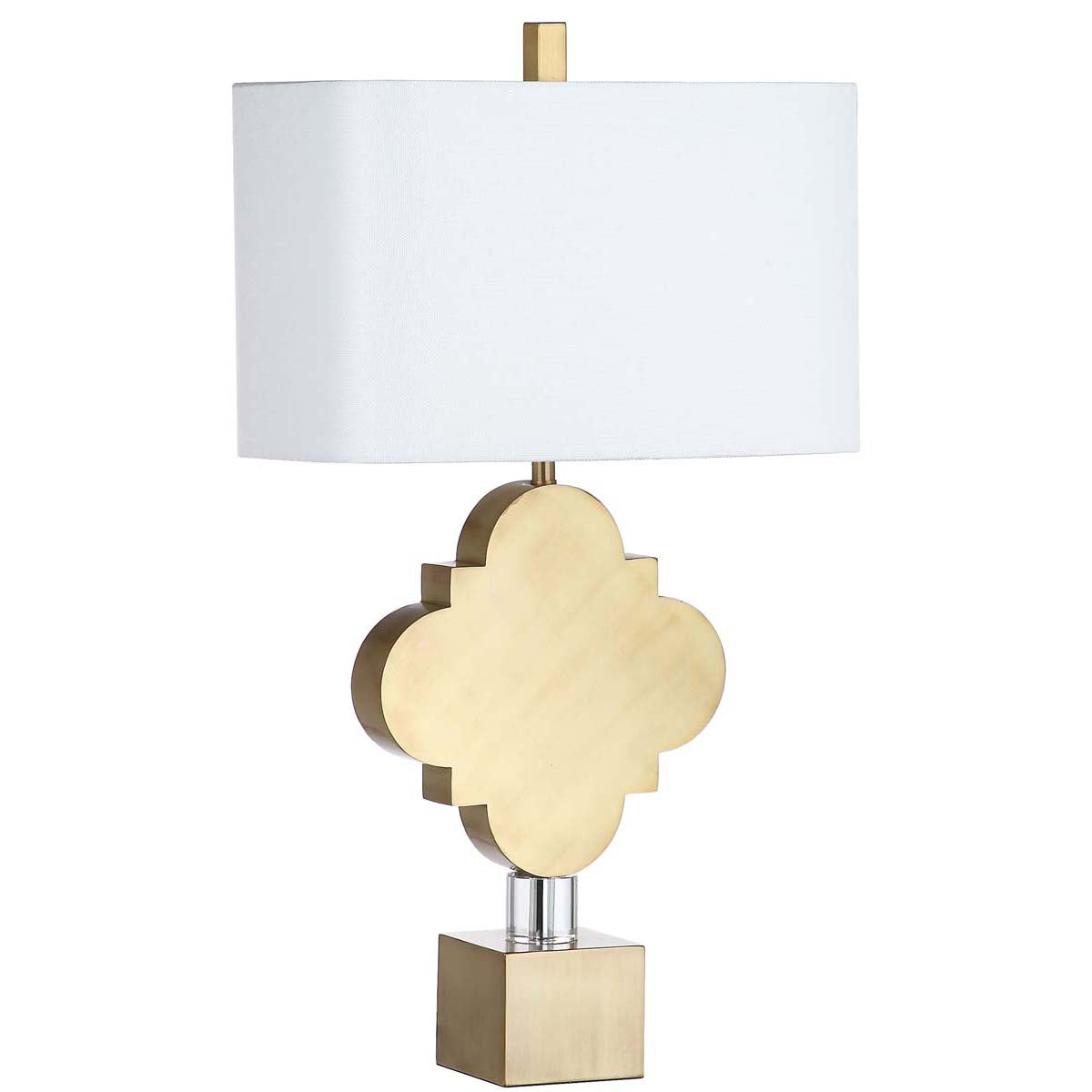 This modern table lamp was designed for the inspired urban interior. Imbued with the artistic presence of modern sculpture, the stunning gold finish on the quatrefoil body is perfectly paired with sparkling crystal detail to create a bold focal point.