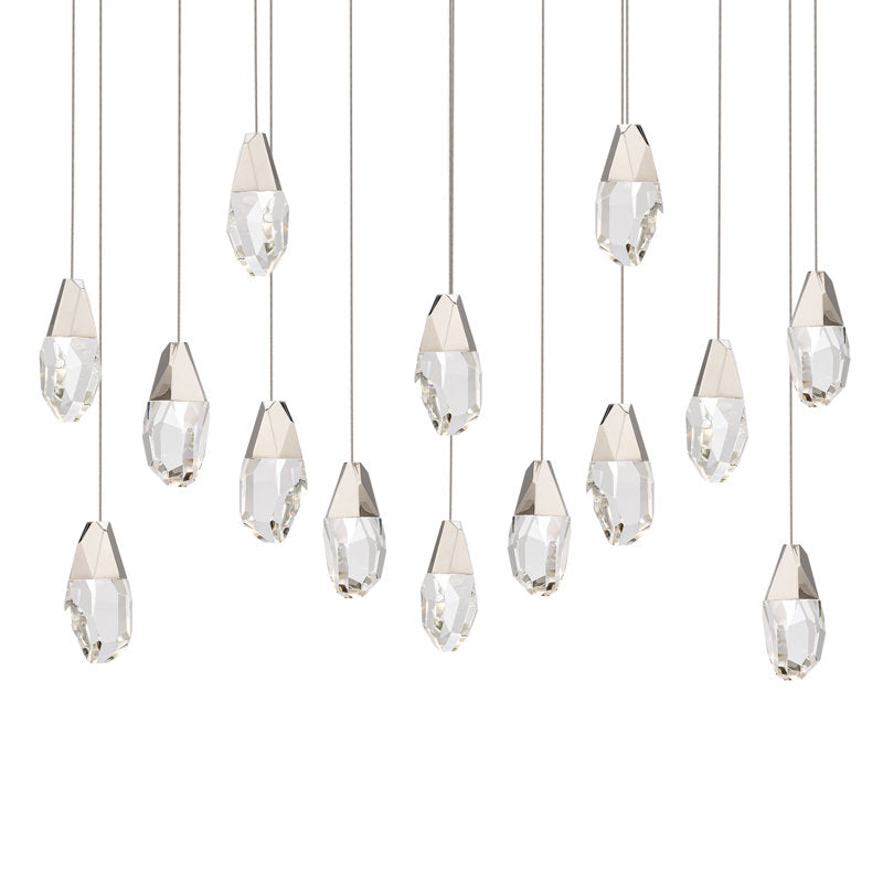 Martini 14 Multi-Light Pendant (Linear Canopy) in Polished Nickel with Optic Haze Quartz | Schonbek - BPD20214LOH-PN