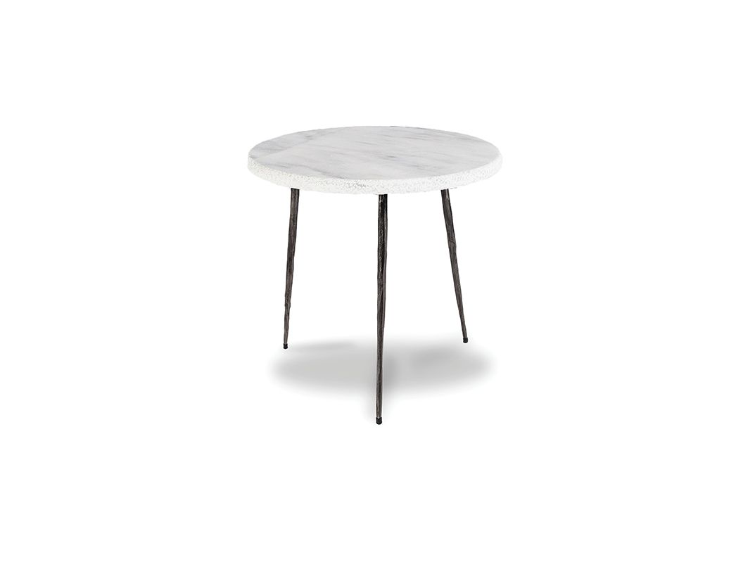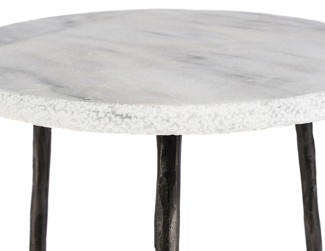 KAII Medium End Table White Marble Hammered Edge/Black Iron Legs | Mobital - WEN-KAII-WHIT-MEDIU