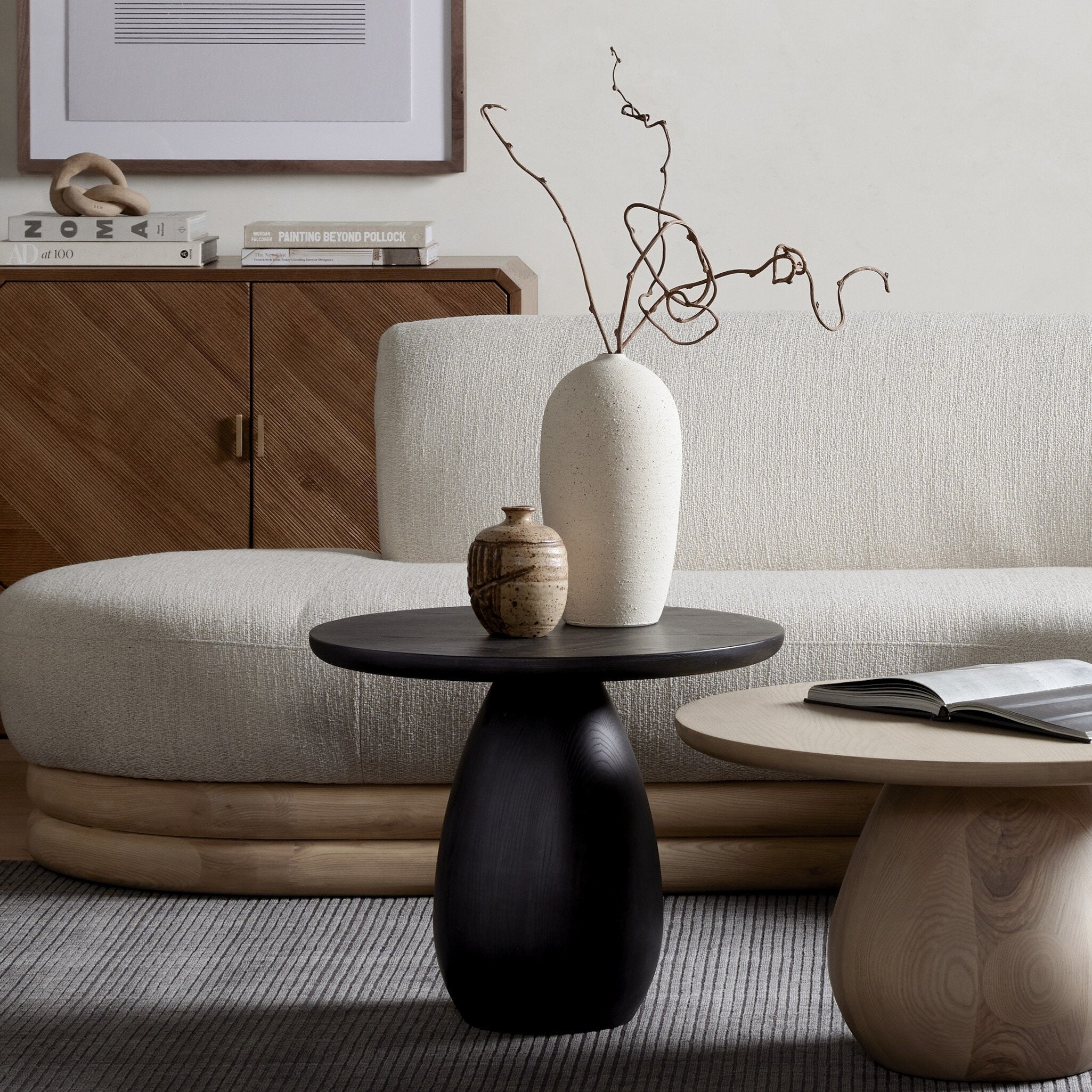 Make a shapely statement. A black-washed solid ash base supports a rounded tabletop, together spurring a soft, voluminous look with rich organic vibes.