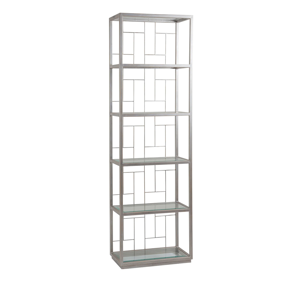 Hand-forged iron frame with six stationary, 1-inch beveled, tempered glass shelves. Shown in the Argento finish, an antiqued silver with gold undertones, but also available in all Artistica Metal Designs finishes. HONEYCOMB - 2056 Hand forged iron bases and beveled glass tops and shelves Hand-forged iron frame, 6 stationary beveled glass shelves. , METAL DESIGNS ,