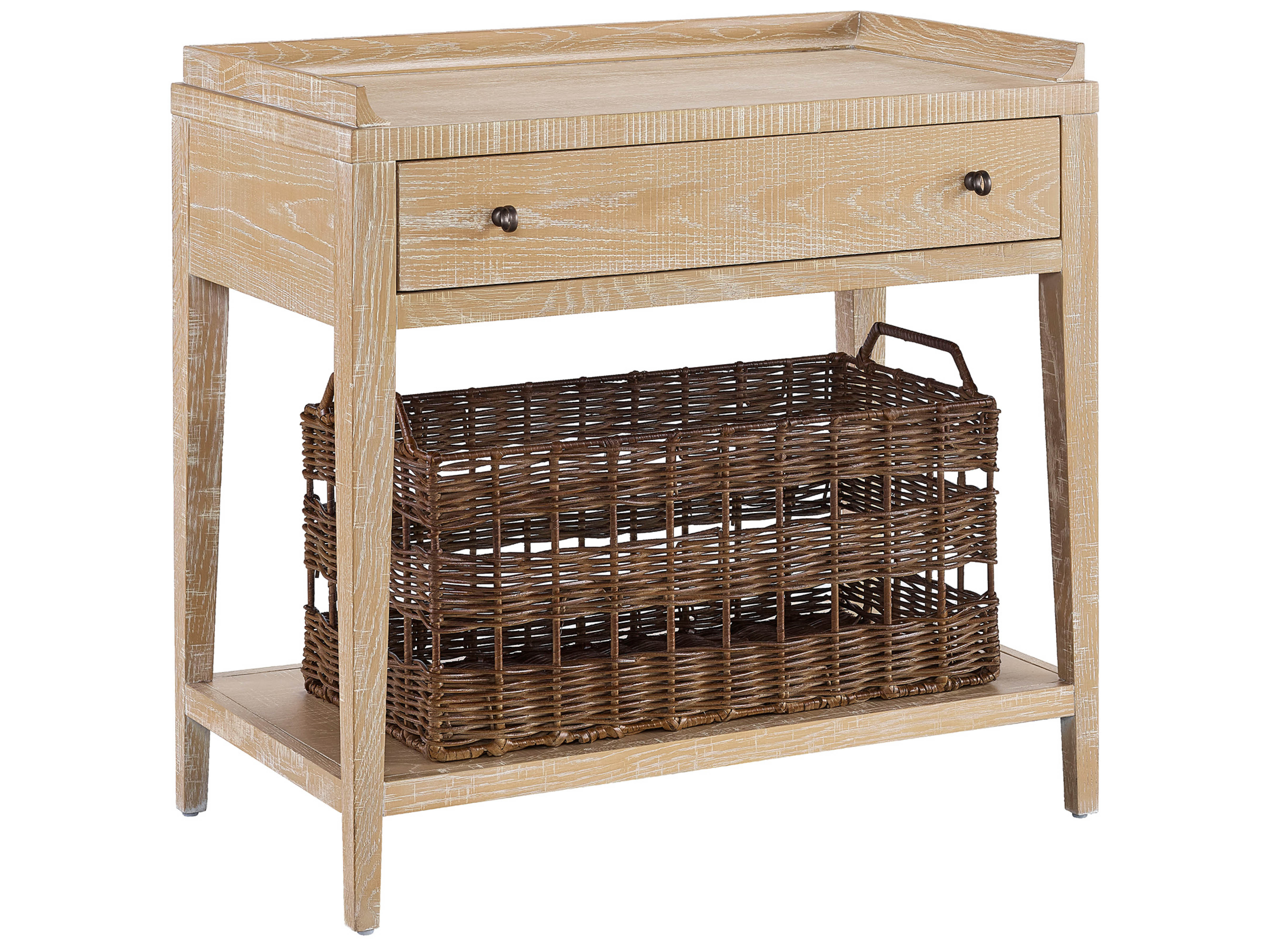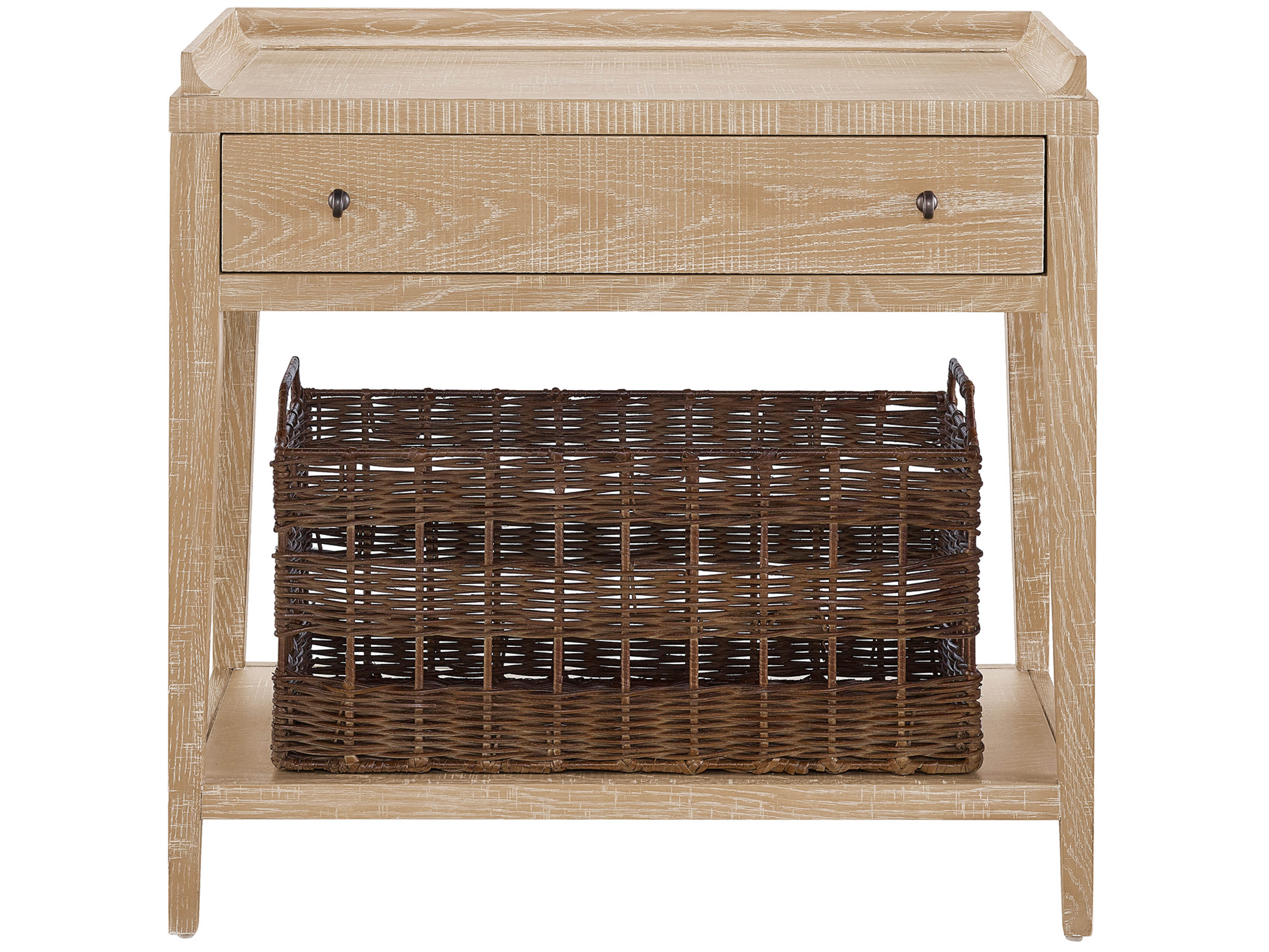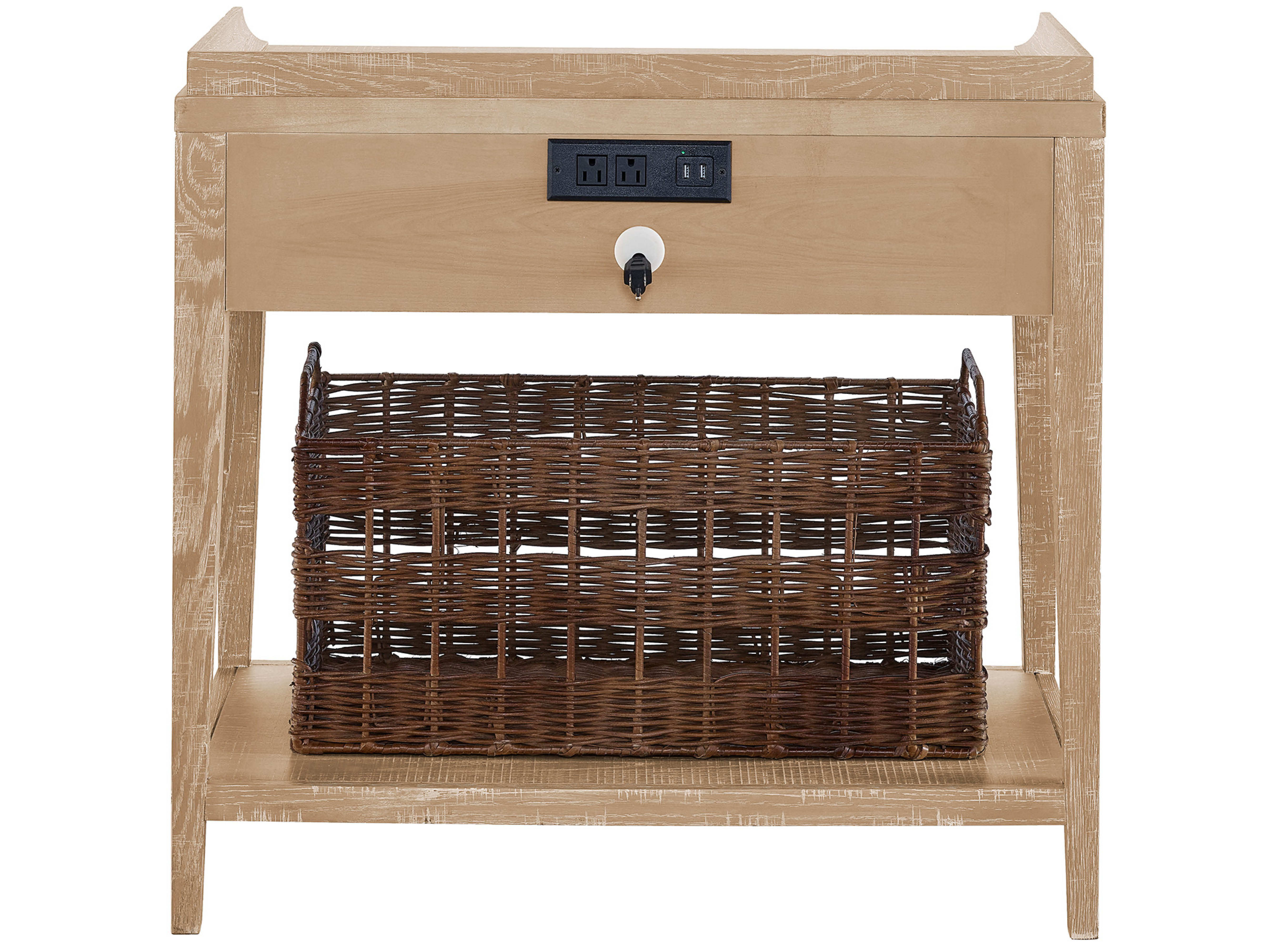 A playful mixed-media favorite, the Rylie Nightstand features one top drawer in addition to a complementing woven open-air storage basket, perfect for storing books, electronics and more.