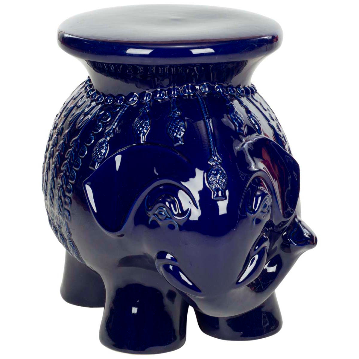 Navy Glazed Ceramic Elephant Stool | Safavieh - ACS4501