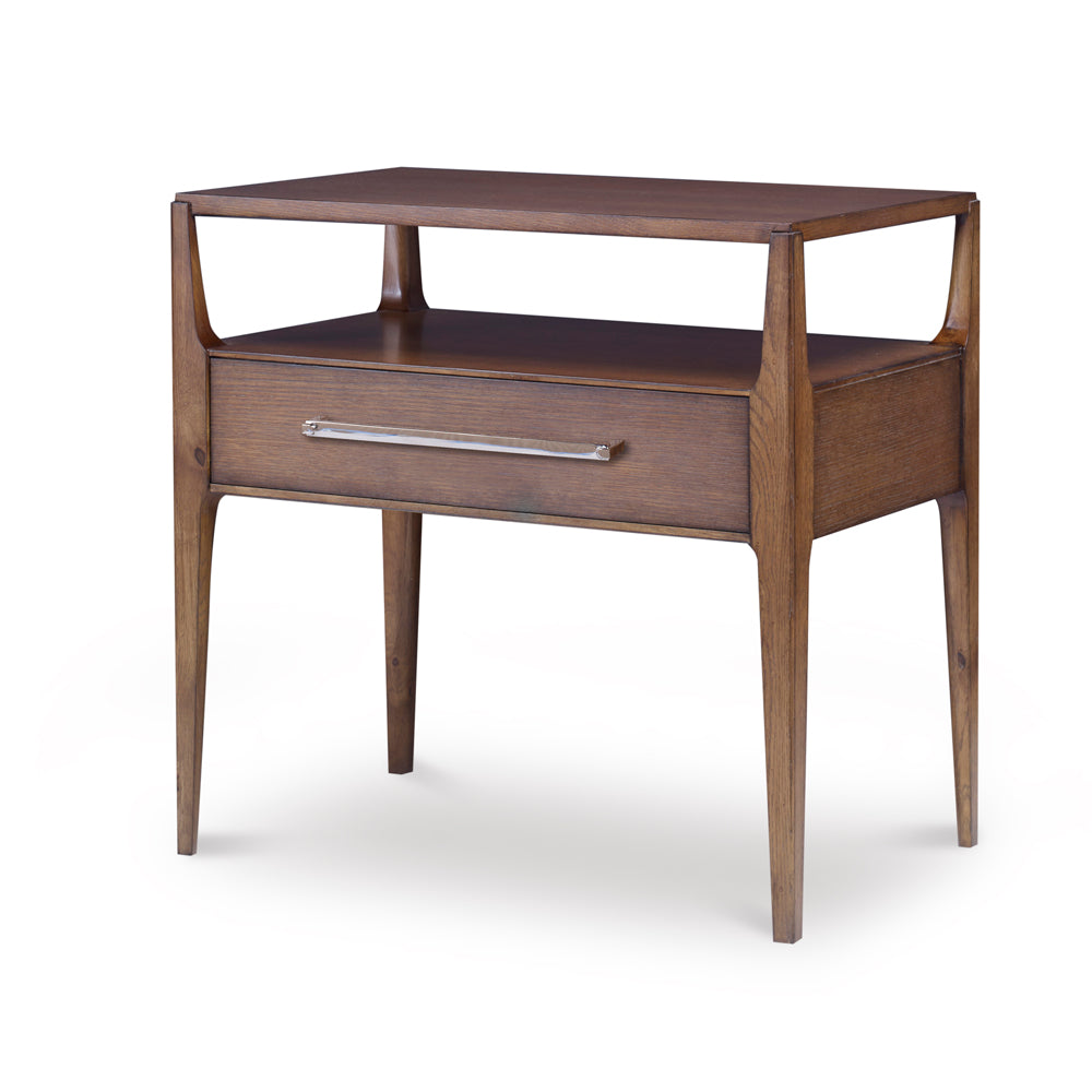 One drawer with polished stainless steel hardware and soft-close drawer guides below open shelf
