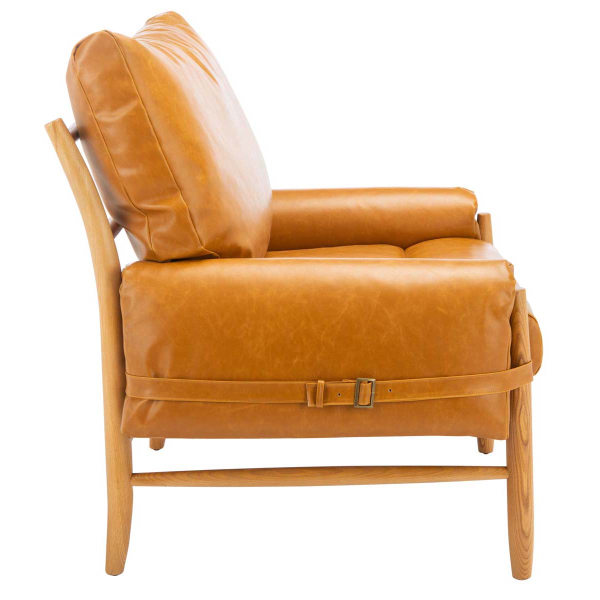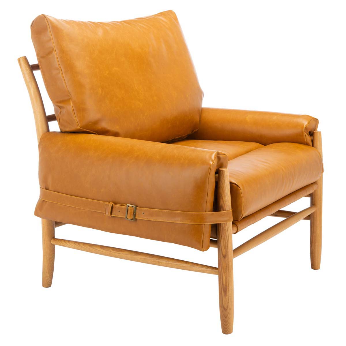 Curl up with a classic in the retro redux style Oslo Mid Century Arm Chair. With just a hint of hint refined rustic charm from its rich caramel colored PU leather upholstered cushions and honey spindle leg frame, Oslo will be the most coveted seat in the house.