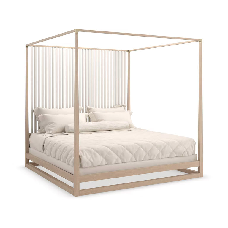 Pinstripe Light Oak/Almond Milk Bed - King | Caracole Furniture - Cla-022-122