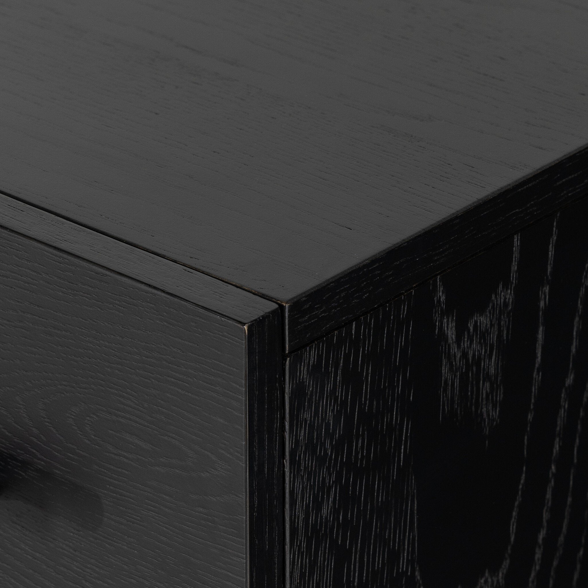 Ebony-finished oak forms a clean silhouette for six spacious drawers with iron hardware wrapped in tan top-grain leather. This item has been modified to comply with the STURDY Act. See a full list of modified products and data changes in the “STURDY Act†file in the Downloads section below.